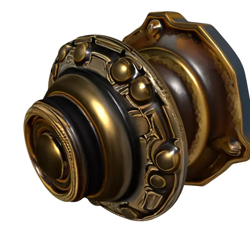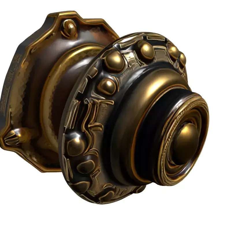 This is a highly detailed 3D model of an antique door knob, meticulously crafted to replicate a vintage aesthetic with an elegant, ornate design. The model features a realistic aged brass or bronze finish, complete with intricate decorative patterns that evoke a sense of history and grandeur. Its robust and clean topology ensures excellent performance across various platforms and applications. This versatile asset is ideal for a wide range of uses, including high-fidelity architectural visualizations, period-specific interior design projects, immersive game environments (e.g., historical, fantasy, gothic themes), and cinematic digital art productions. It is also well-suited for augmented reality (AR) and virtual reality (VR) experiences, providing an authentic touch to virtual spaces. The model comes fully UV unwrapped with professionally created PBR (Physically Based Rendering) textures, guaranteeing photorealistic results in any modern rendering engine. It is optimized for both real-time applications, potentially with multiple levels of detail, and static renders requiring exquisite detail. Supported file formats typically include GLB, OBJ, FBX, DAE, USD, and PLY, ensuring broad compatibility for your creative workflow.