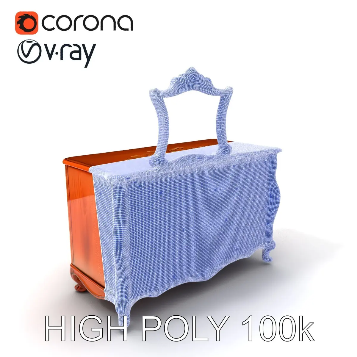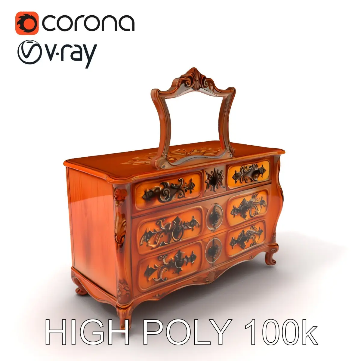 The dresser features intricate carvings, a beautifully framed mirror, and decorative accents, exemplifying the elegance of vintage craftsmanship. Each model is carefully unwrapped with no overlapping UVs, providing optimal quality and realism.