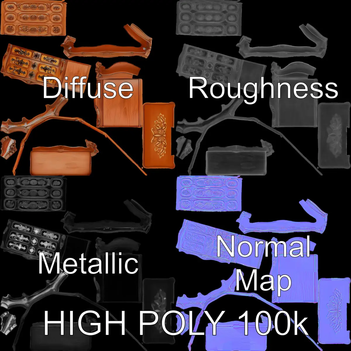 Perfect for period piece films, historical games, or antique virtual showcases, this model offers rich detailing with PBR textures, including Diffuse, NormalMap, and reflection/roughness/metallic maps, all at 4096*4096 resolution.