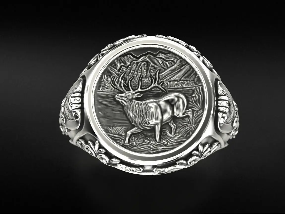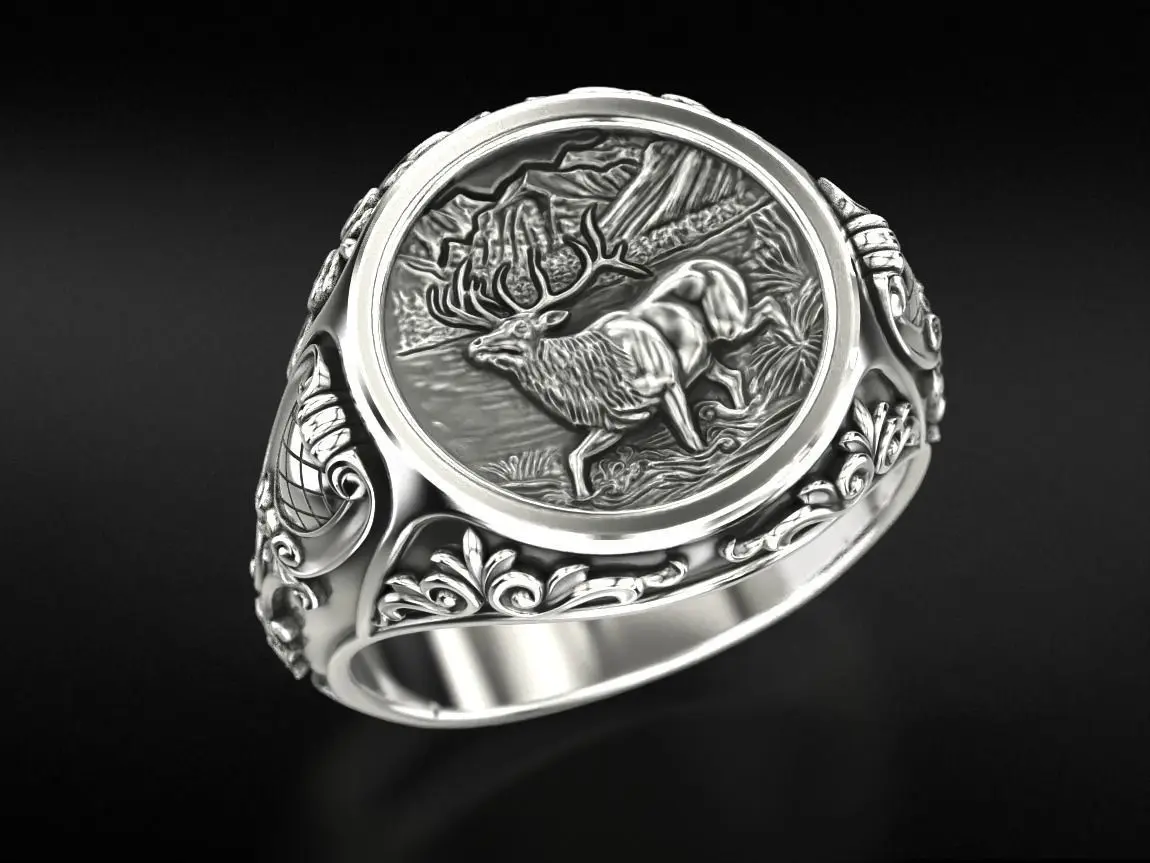 Antique patterned ring with deer