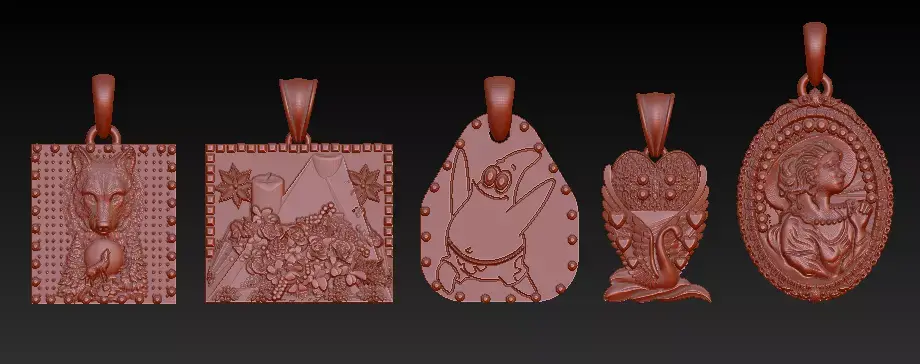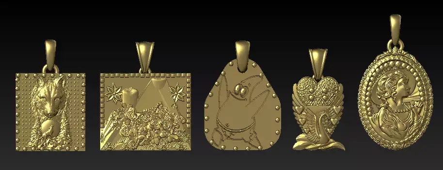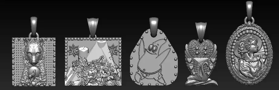 Discover the Mythic Grace Pendant Collection — a captivating blend of fantasy, art, and craftsmanship. Each pendant in this 3D-printed jewelry set tells a story: from the fierce wolf spirit guarding a gem, to romantic floral motifs, playful cartoon engravings, angelic wings, and elegant vintage portraits. Designed for collectors, artists, and jewelry enthusiasts, these pendants bring sculpture and storytelling together in wearable form.