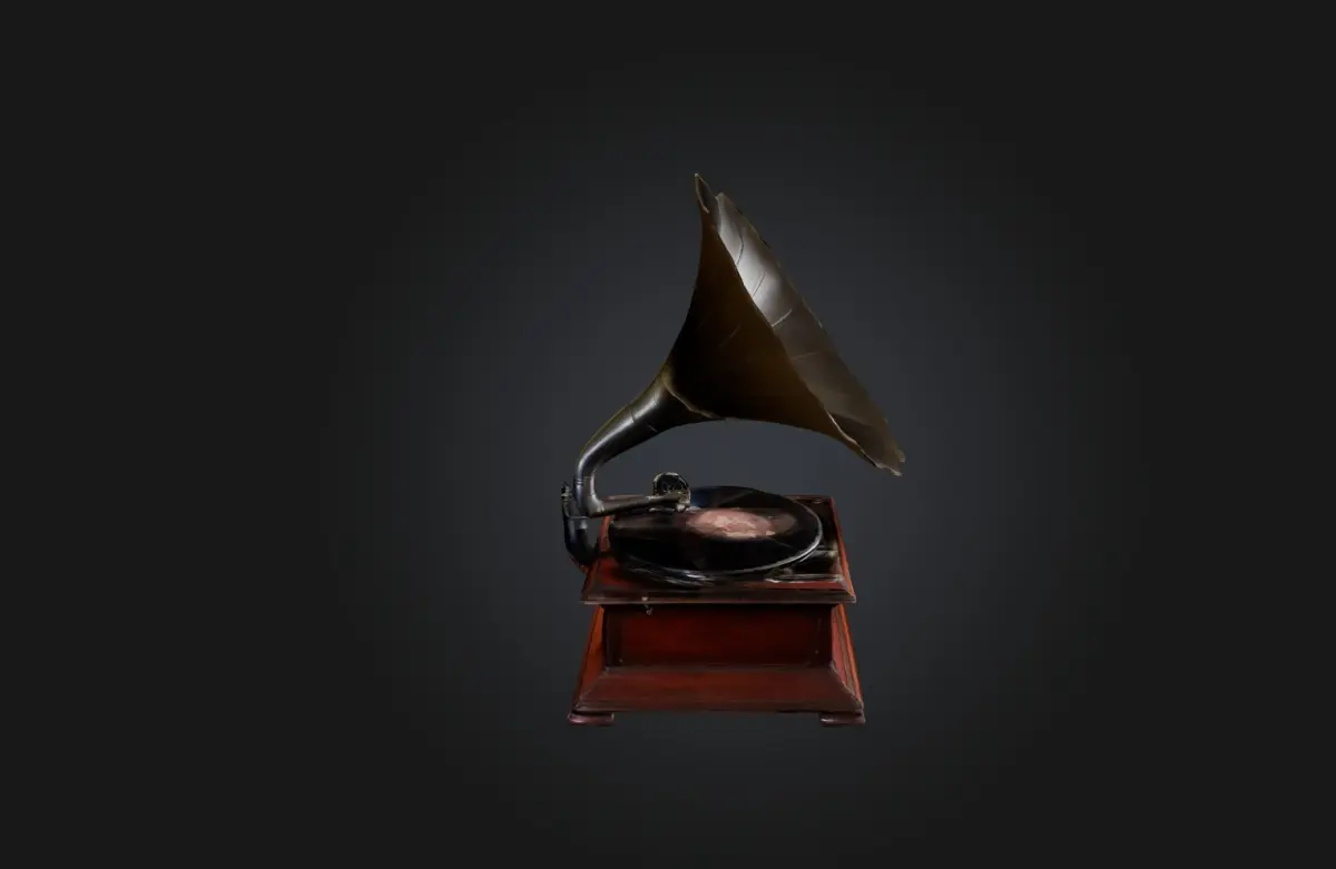 [Fonógrafo antigo, fonógrafo vintage, reprodutor de música clássico, modelo 3D, dispositivo histórico, áudio antigo, design de fonógrafo, reprodutor de música retrô]