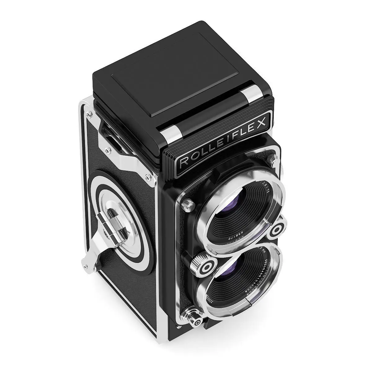 3d model of antique Rolleiflex photographic camera. Compatible with 3ds max 2010 or higher and many others.