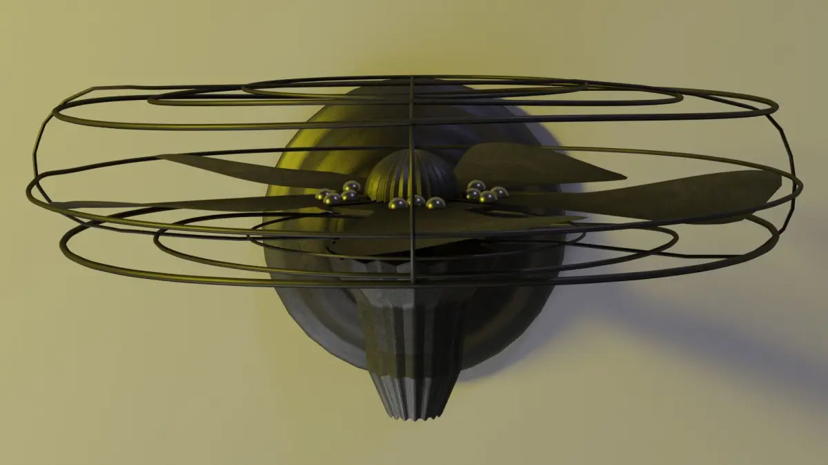 This antique fan sculpture was a fun little project in practicing creating a model from a (somewhat random) image source. In real life, it's a decorative item with somewhat of a retro-industrial look. I used it as a part of a bookshelf arrangement 3D model. Although not optimized for performance, the model is still fairly simple, with only two materials - hot rolled steel for everything but the rivets, which are a shiny, stainless steel finish.