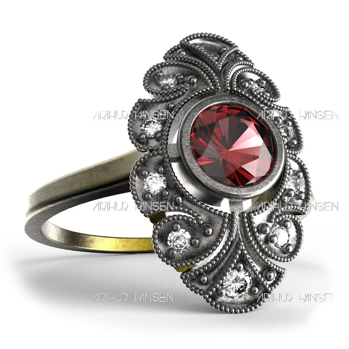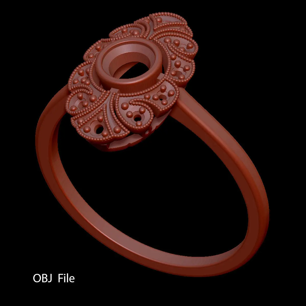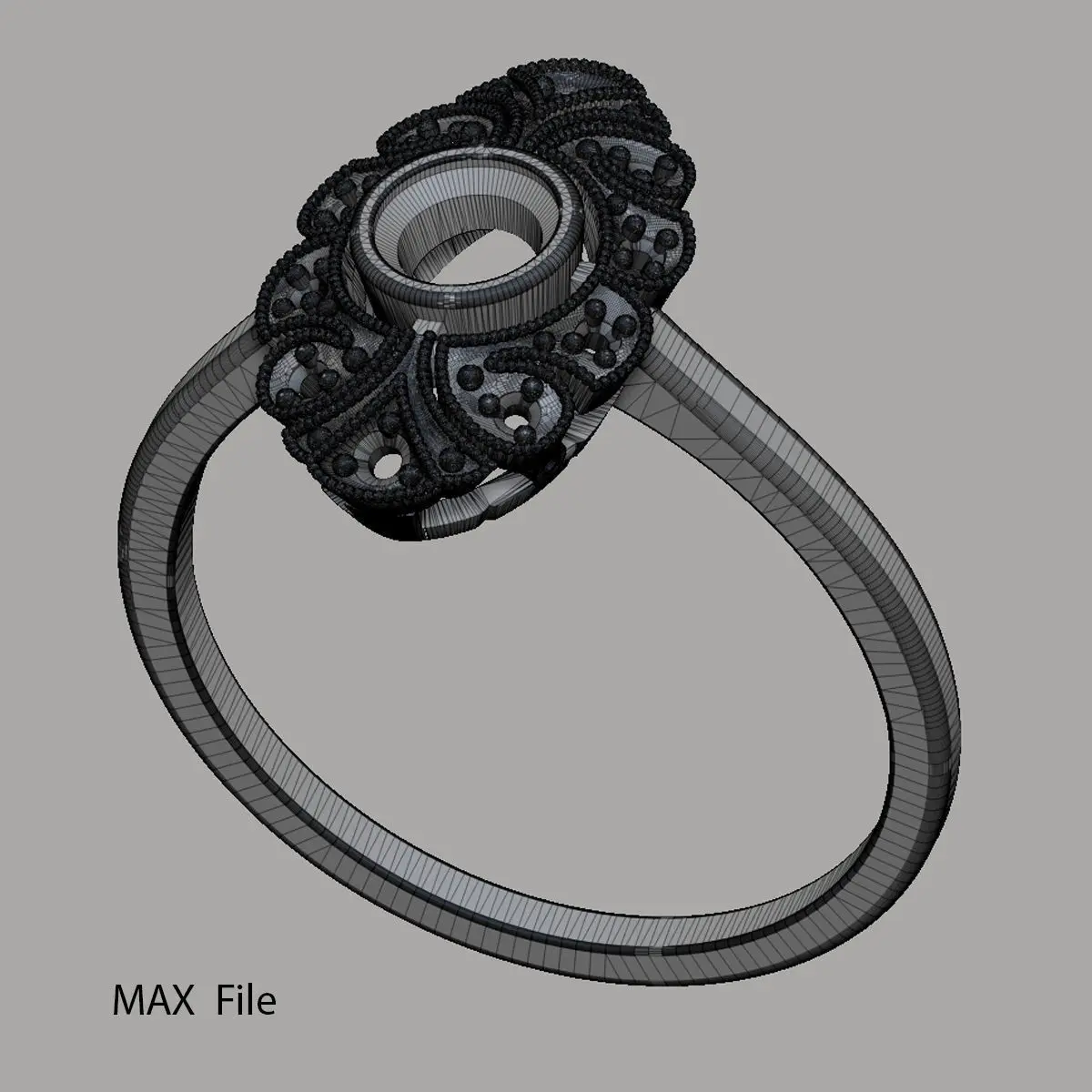 Antique Ring design. Model is ready for prototyping on CNC and 3D Printing.ZBrush ZTL file from 2 SubTools - Shank and DiamondsCenter Diamods is 4.3mm diameter - 0.313ct2 Diamonds is 1.4mm diameter - 0.011ct8 Diamonds is 1.1mm diameter - 0.006ctTotal weight of Metal in 14 kt gold is about - 3.20 grRing Size - 17.50mm diameter