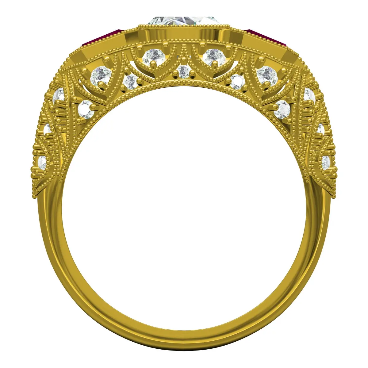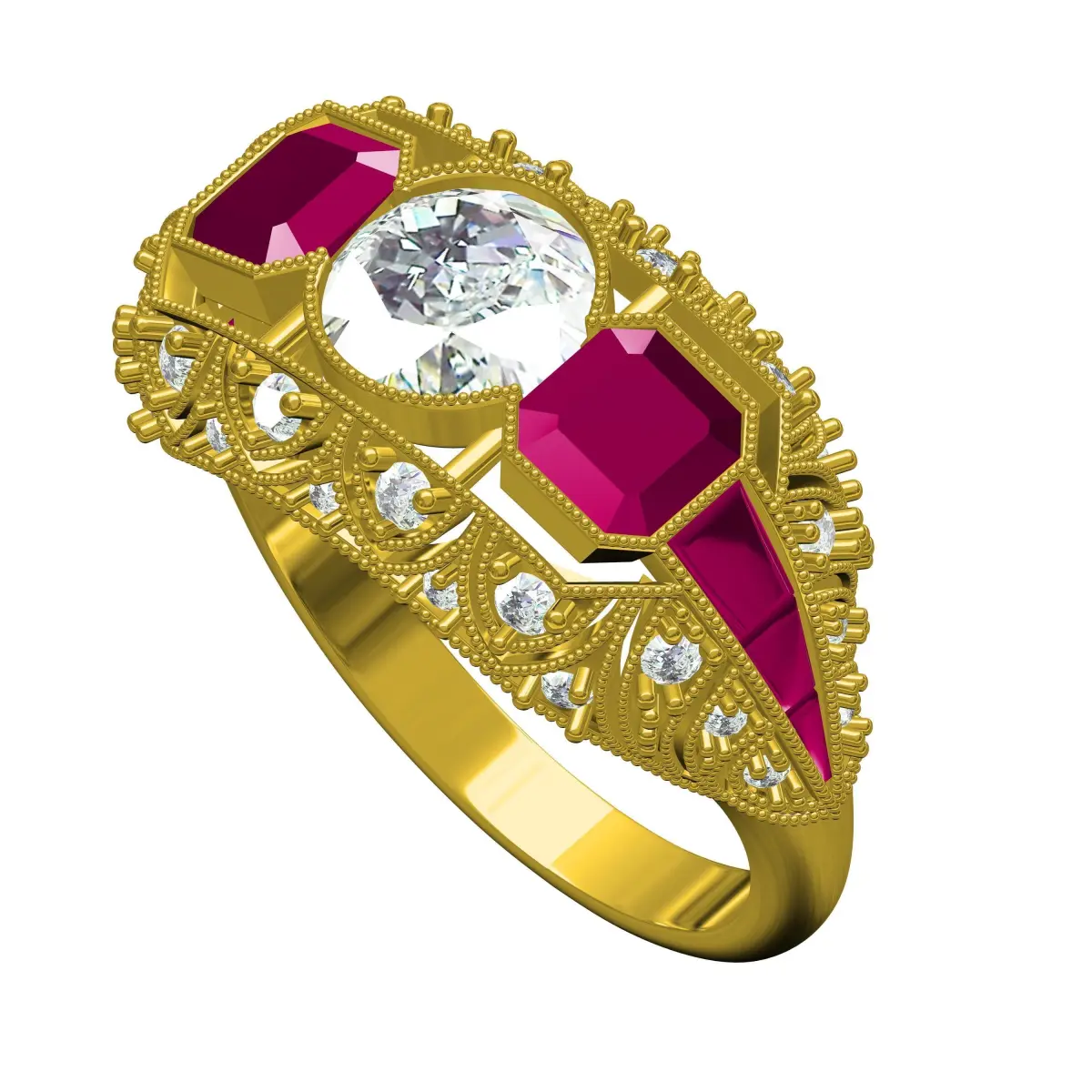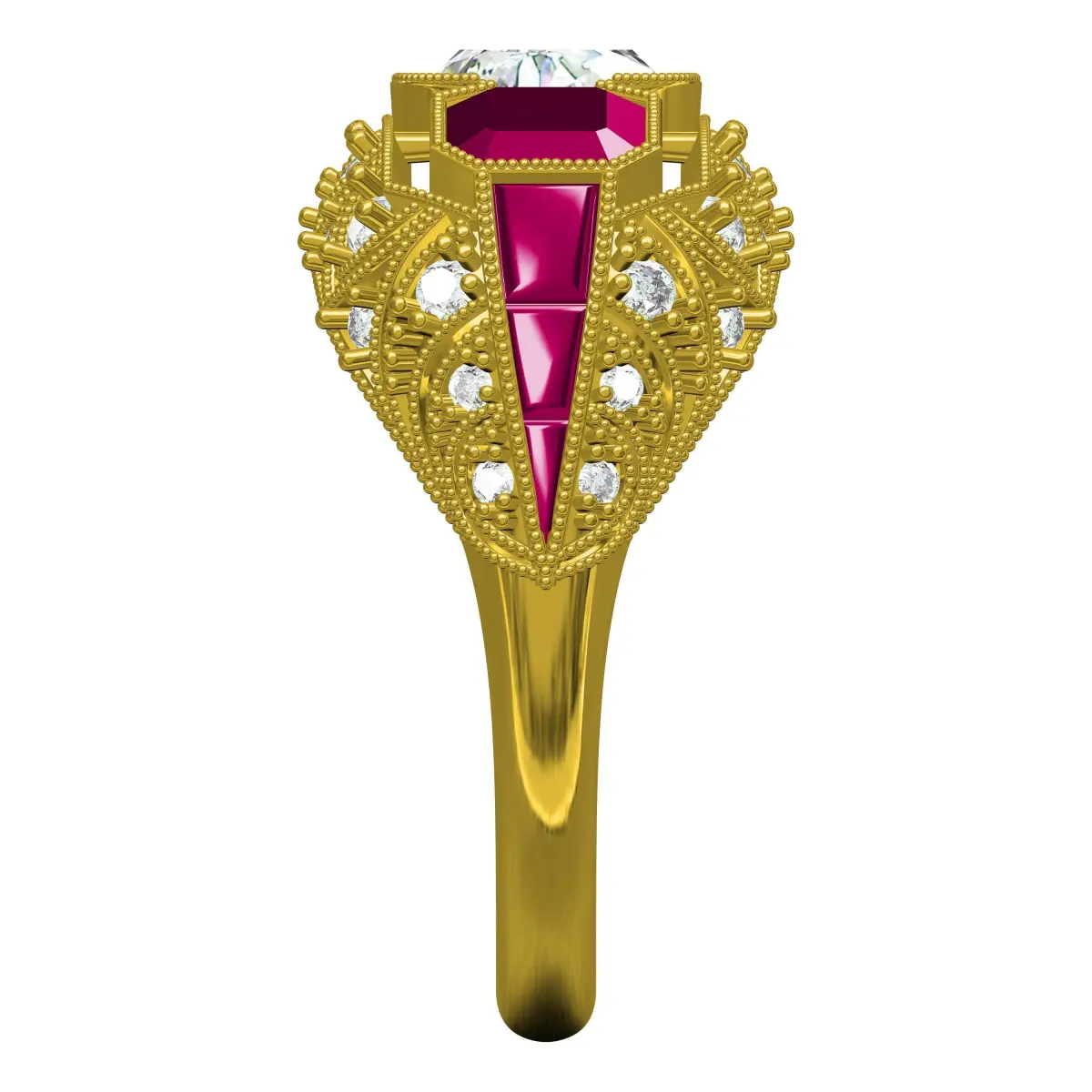 Antique Ruby Octagon Stone Art Deco Engagement Ring