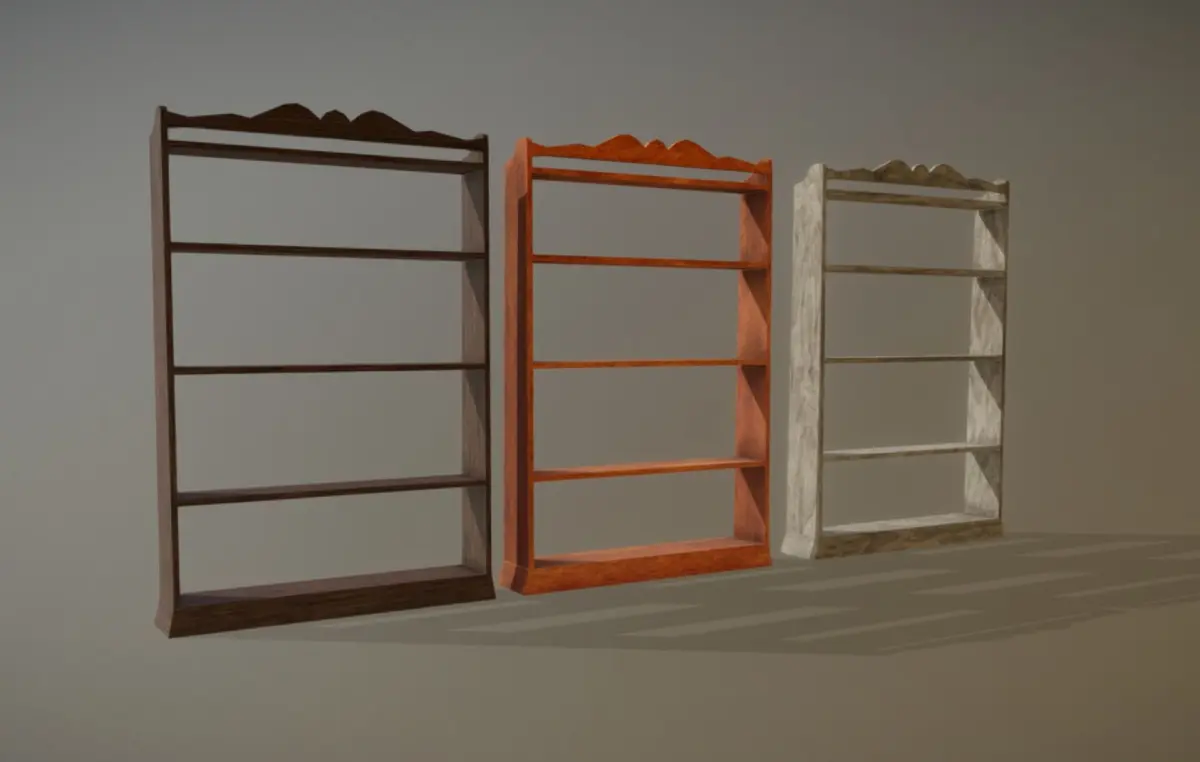 Antique Shelf low-poly game ready - Mesh: FBX 300 tri -Low Poly PBR - includes fbx obj dae meshes and texture channels as PNG. - ** USDZ file has also material and textures embedded**. made of steel