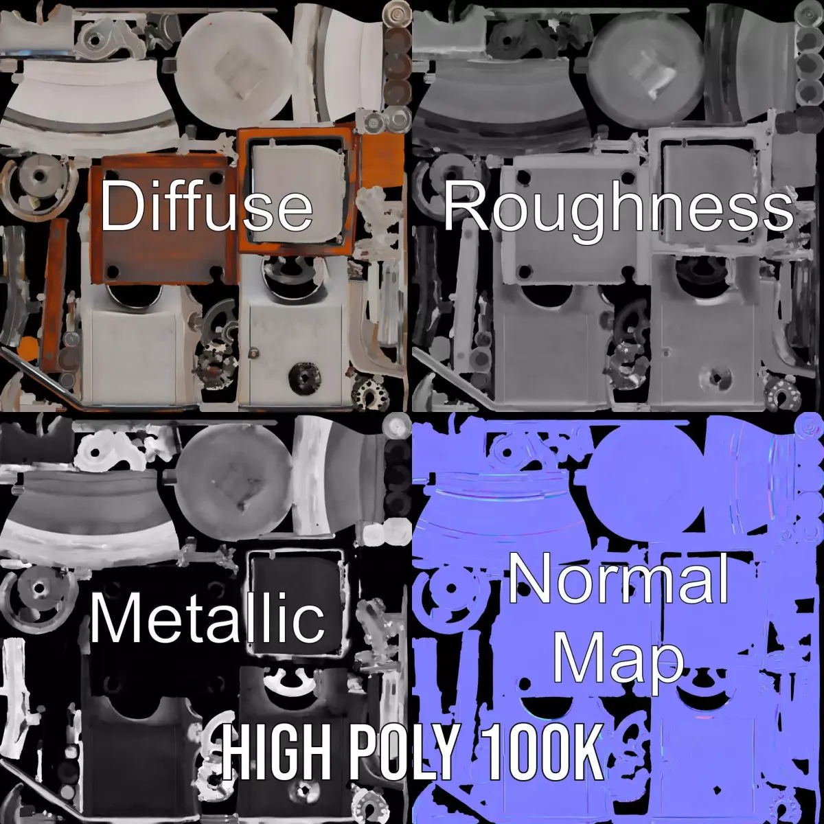 This detailed antique silver grinder model captures the elegance and functionality of classic kitchen appliances. Its stainless steel and wood texture make it ideal for historical or culinary environments. Each model has 3 levels of detail: low-poly (1000 triangles for mobile), middle-poly (10 000 triangles for environment), and high-poly (100 000 triangles), which allows for the use of this model in production rendering (such as 3ds Max, Maya, Cinema4D, Blender, Vray/Corona/Cycles and all others), game engines (Unity and Unreal compatible), and interactive presentations, providing a choice of detail based on the LOD System principle. This model is perfect for use in period films, vintage kitchen projects, and educational demonstrations. The model's textures are PBR, Diffuse, NormalMap, and reflection/roughness/metallic, which are suitable for any modern rendering engine. All models are accurately unwrapped and have no overlapping UV. All textures are 4096*4096 in size. If you like this model, please leave a comment and like!