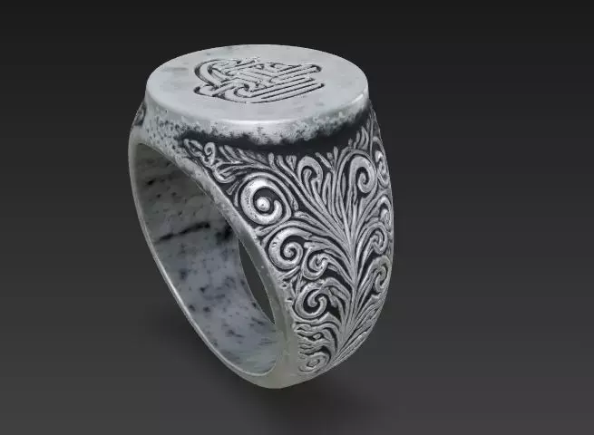 Worn Surface Texture To prevent the ring from looking like a perfect CGI object, the flat top surface has subtle micro-scratches and pockmarks. This wear and tear suggests the ring has been worn for years and used to seal many letters.