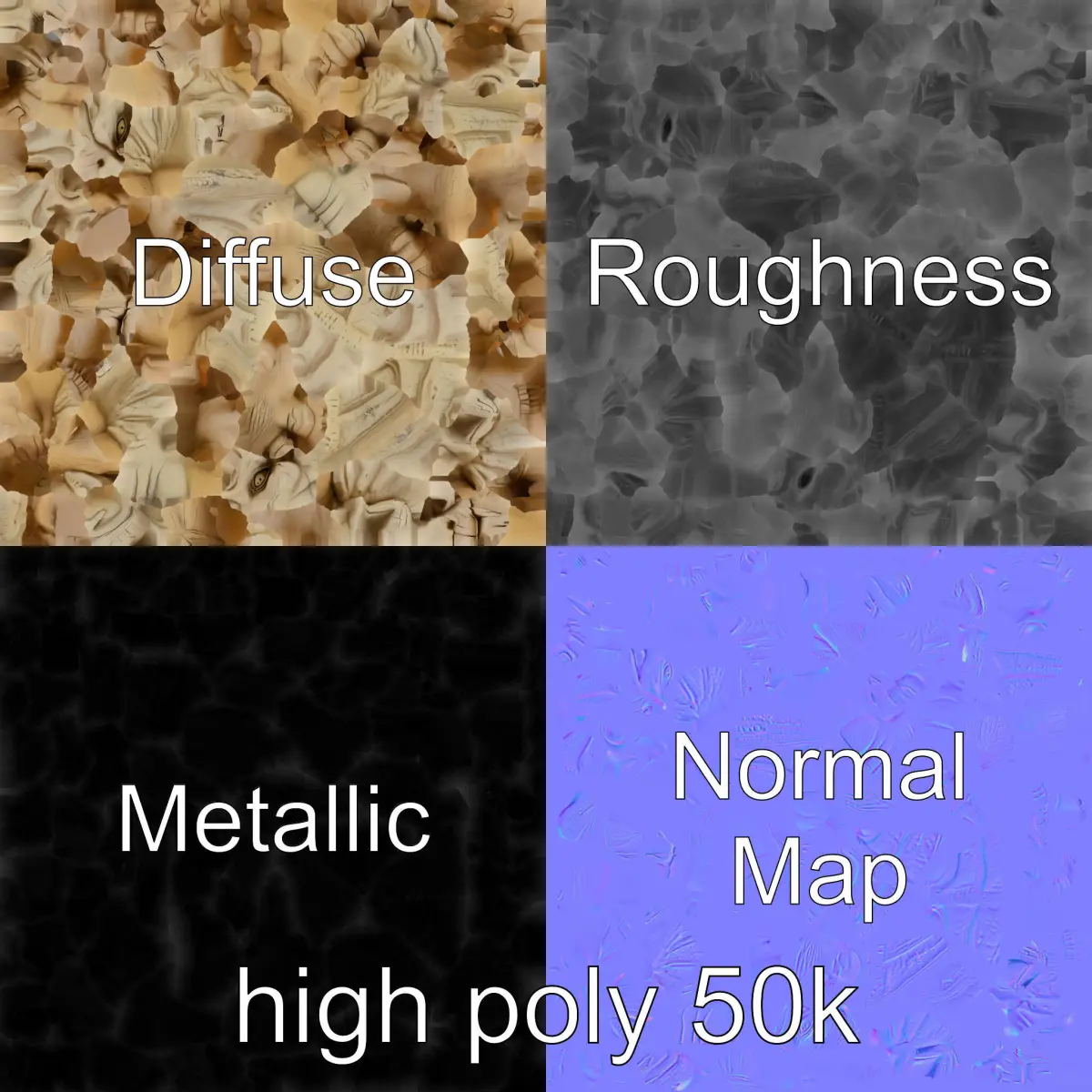 The model's textures are PBR, Diffuse, NormalMap, and reflection/roughness/metallic, making it suitable for any modern rendering engine. All models are accurately unwrapped with no overlapping UVs, ensuring ease of use across applications. All textures are 4096x4096 in size.