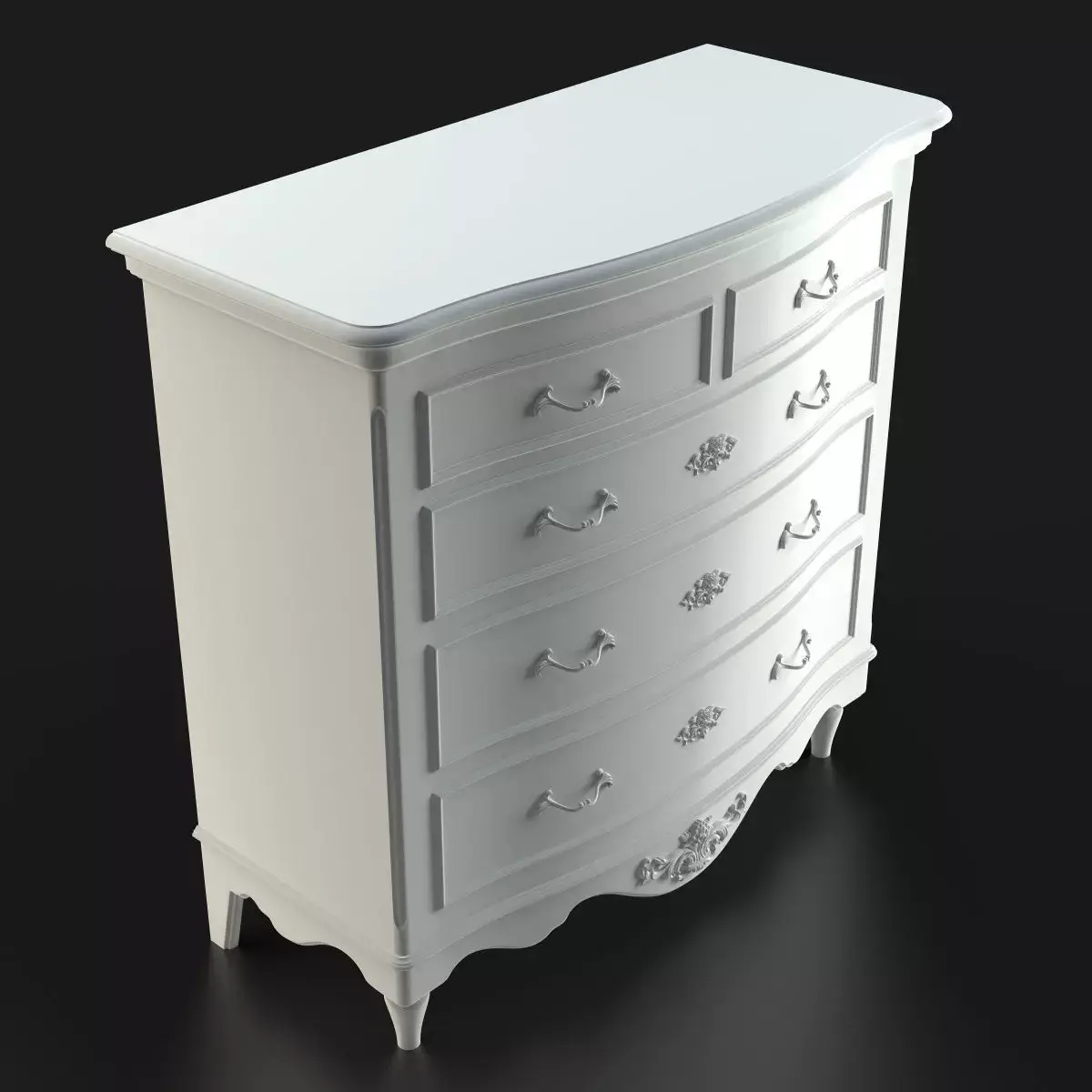 3D Model of Antique-Style Chest of 5 Drawers