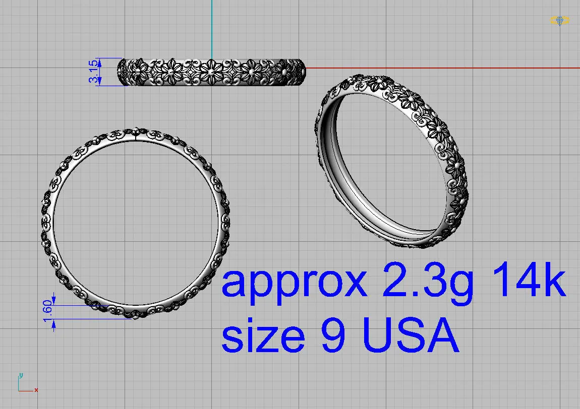 Great design ,antique style wedding band with flowers and filigree .