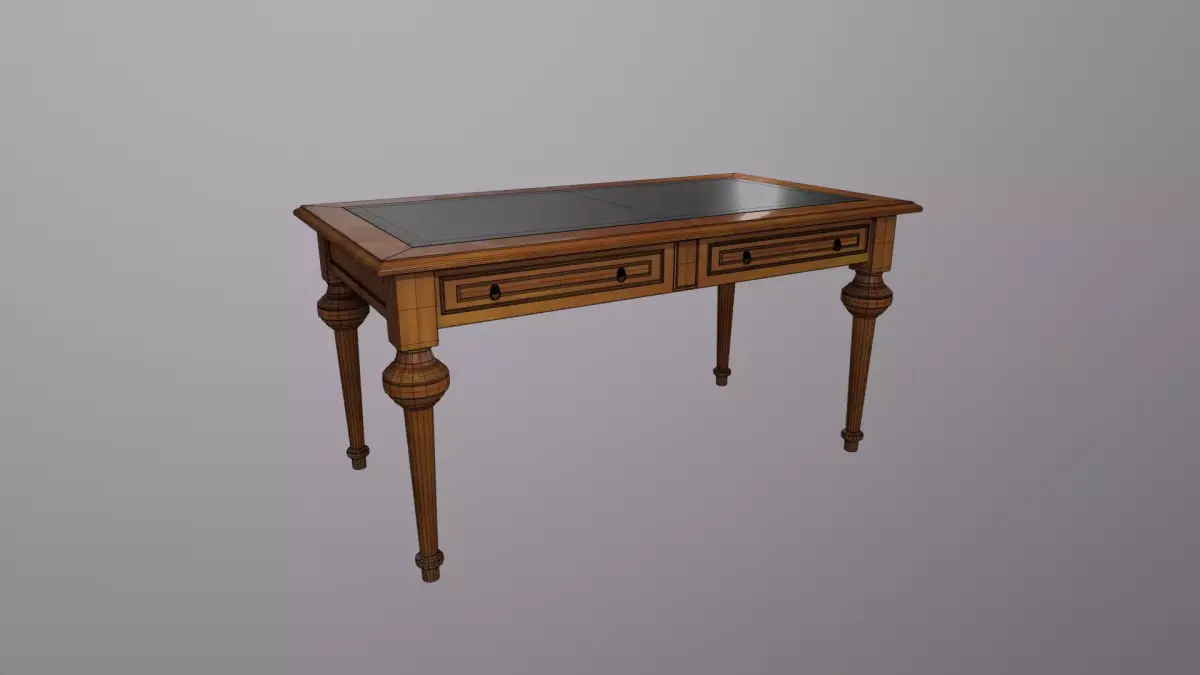 This highly detailed and elegantly crafted 3D model of an antique wooden office table conveys the classic charm of a venerable study desk - rich wood grain, refined craftsmanship, and era-appropriate proportions - while being optimized for modern pipelines. With a polygon count (6,806 polygons / 13,572 triangles) and a real-world height of 86 cm, this model strikes the perfect balance between visual quality and runtime performance. Suitable for architectural visualisations, high-quality interior renders, game environments, VR/AR applications, or film/animation projects.