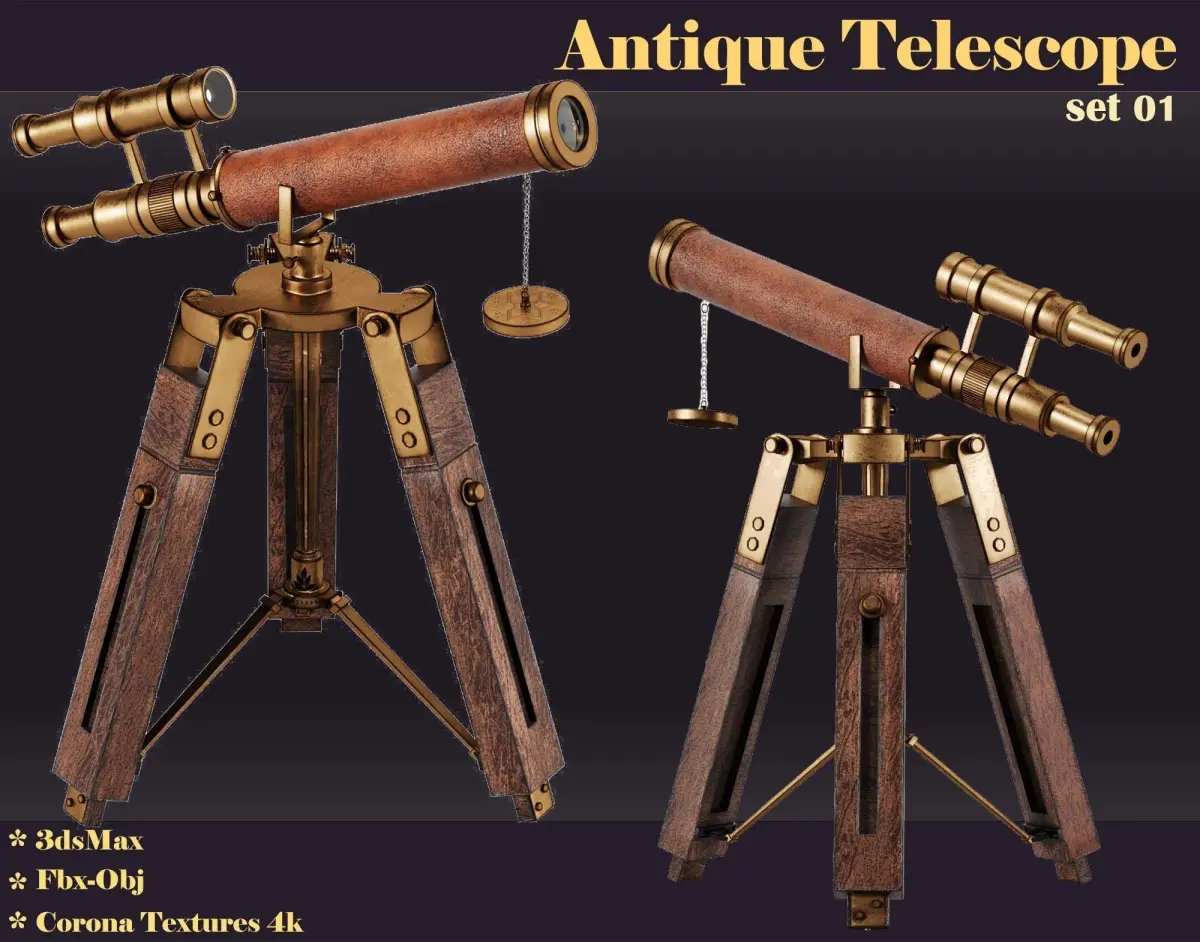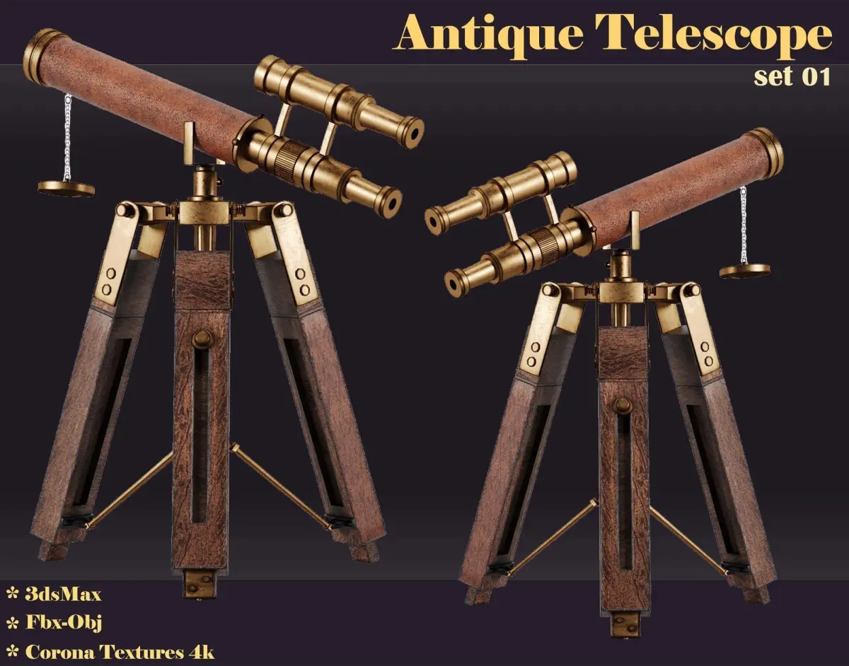 in youtube video :In this video, we showcase a beautifully designed 3D model of an antique telescope. Created with precision using 3ds Max, FBX, and OBJ formats, this model features 4K Corona textures, offering exceptional detail. Ideal for graphic projects, animation, and interior design, this telescope brings a luxurious and classic look to any scene. If you’re looking for a unique and high-quality 3D model, don’t miss out on this extraordinary piece!