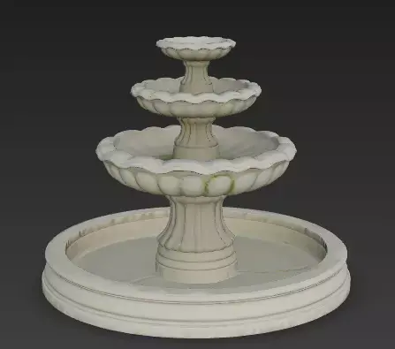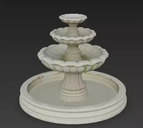 Realistic Moss Details The most striking detail is the green moss and algae growing on the edges of the middle bowls. These green stains show that the fountain has been wet and exposed to nature for a long time, adding a layer of history to the object.