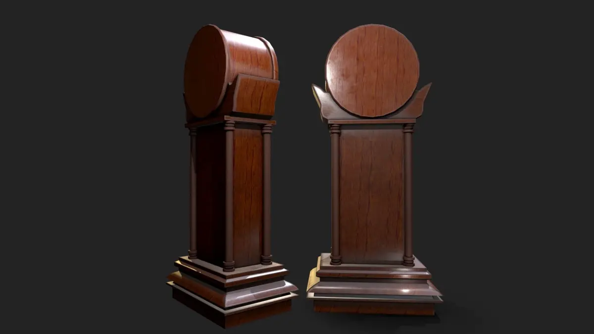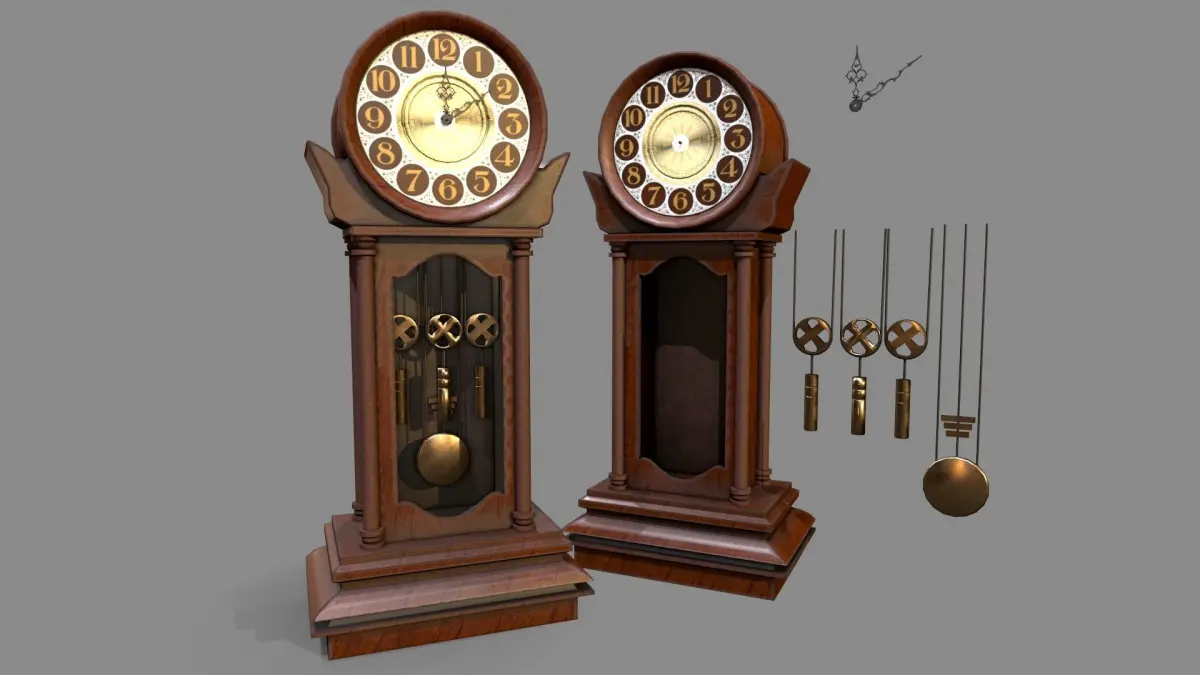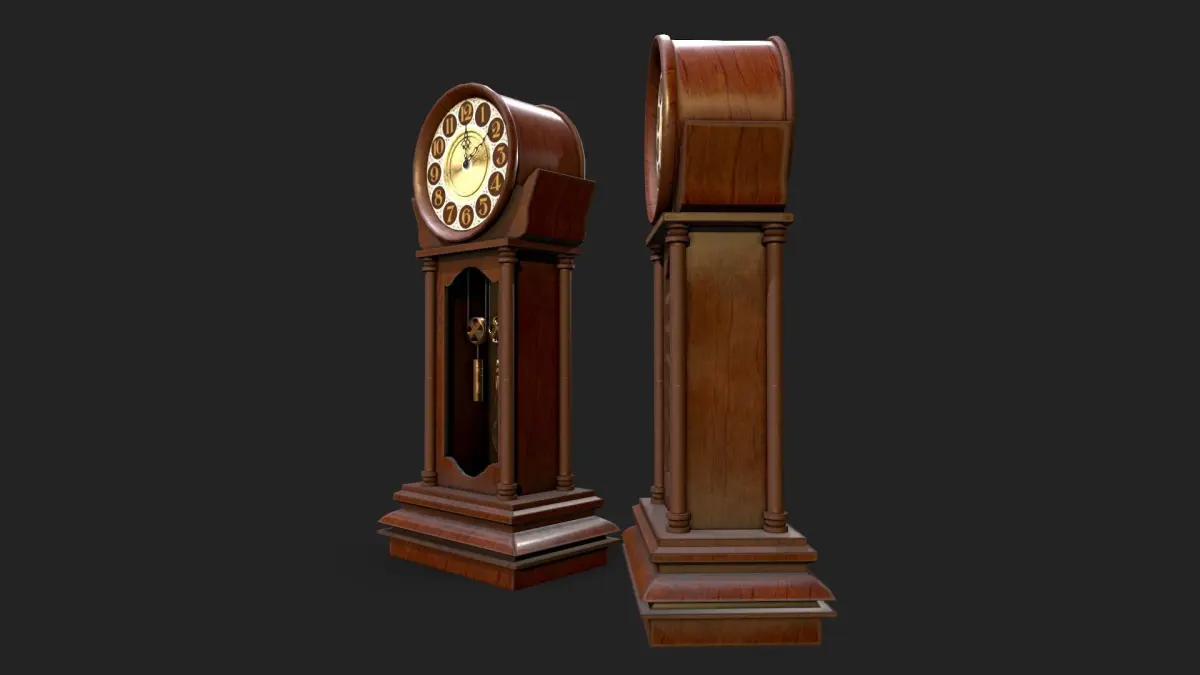 The antique timepiece is a tall, freestanding, weight-driven pendulum clock with the pendulum held inside the tower or waist of the case.This model can be applied to animated films, short films, virtual environments, augmented environments, 3-D games, and more.
