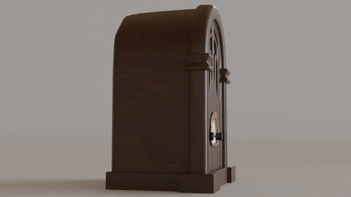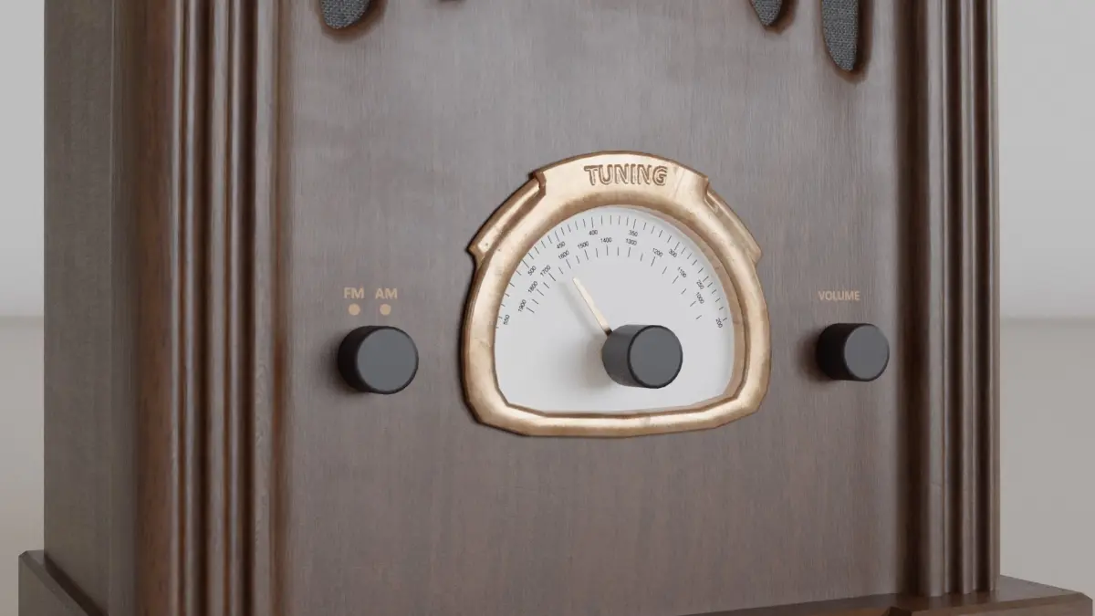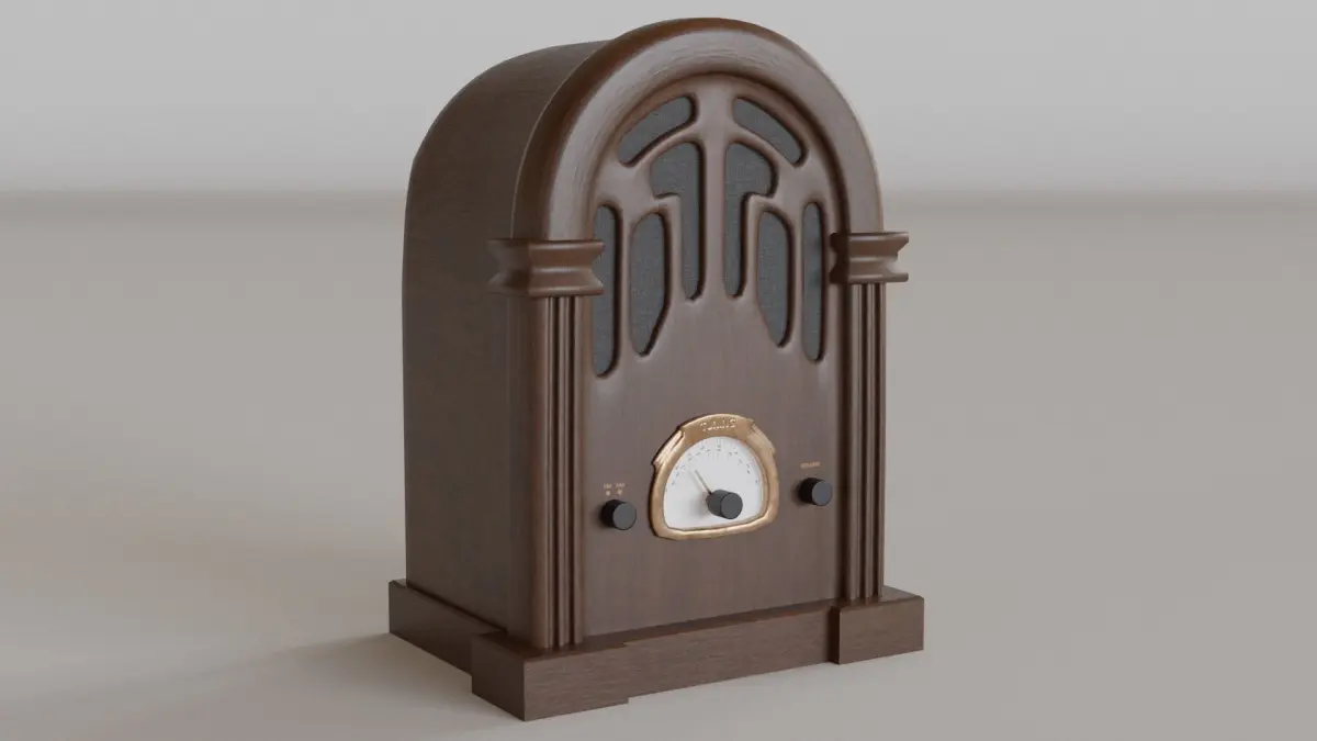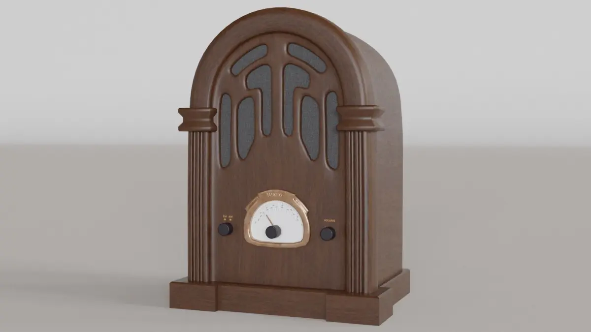 The vitage radio would work well in video games and animations. It is based of wirelesses from the 1930 but would work equally well in a steampunk setting. It has a volume knob, tuner and AM / FM selector.
