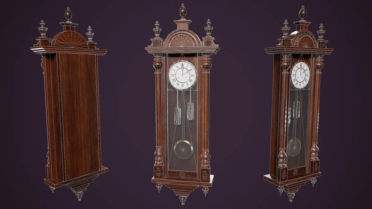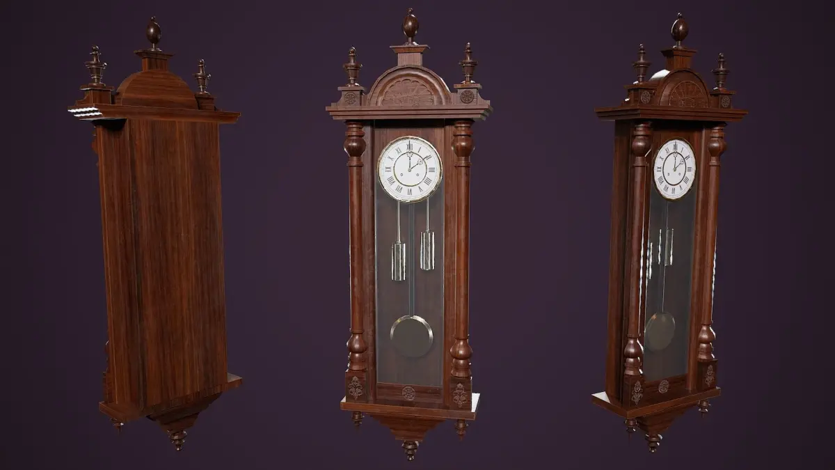 Detailed gameready PBR 3d model of an antique wall clock from 1930’s.