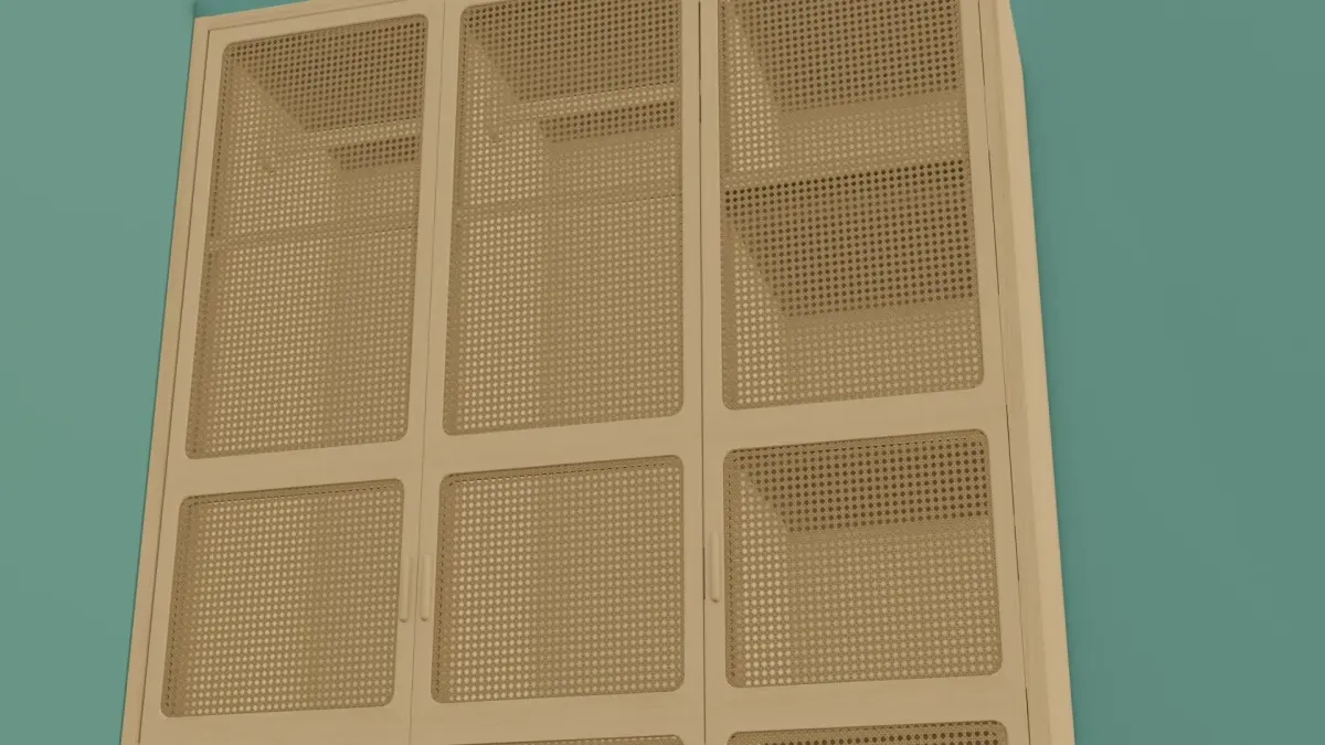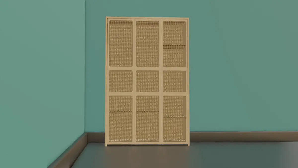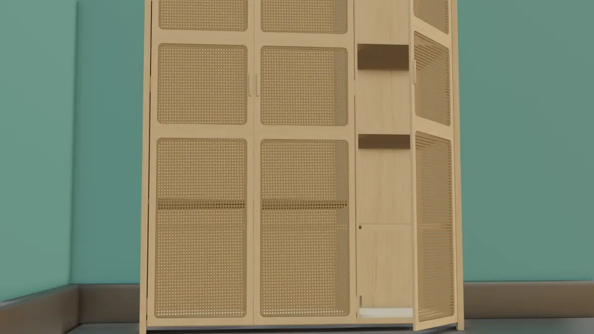 Take advantage of the translucent to rather see through weaved pattern on the closet doors to display clothes, shoes, jewelry and other personalized atire or clothing assets.Use it even in games by combining the textures or using them as they are.All sides are modeled so you shouldn't worry about hiding parts that are not visible...