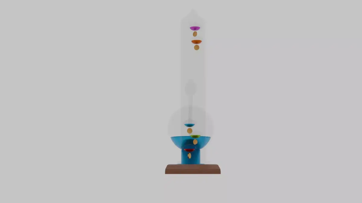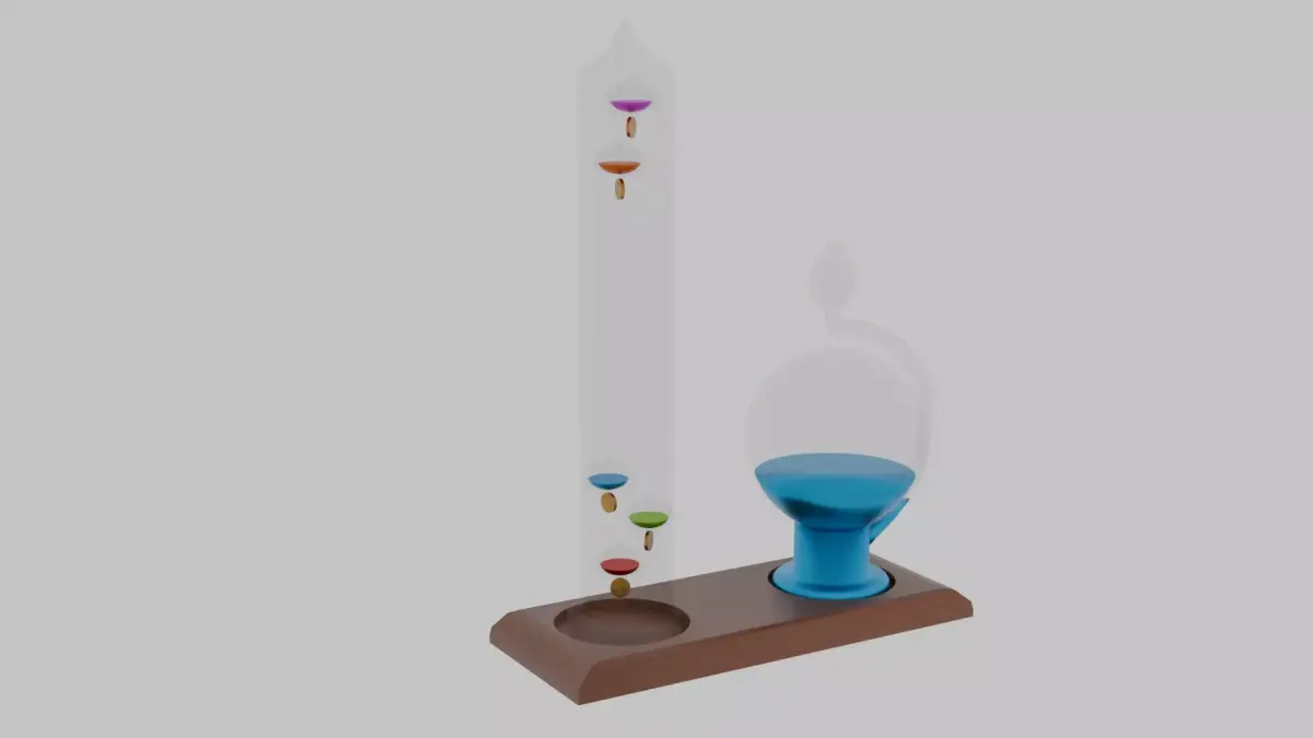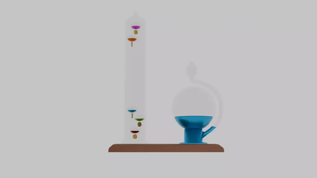 This detailed 3D model of an antique weather station captures the timeless elegance of classic weather instruments. It features a Galilean thermometer and a barometer mounted on a weathered wooden base, each component modeled with care and realism. The glass bulbs and liquid-filled chambers showcase subtle refraction and color variation, giving the piece an authentic scientific charm.
