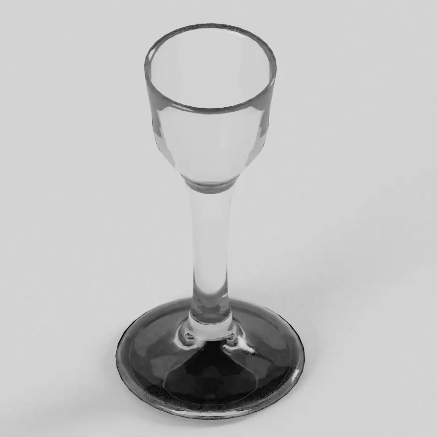 This was modelled in Blender after a real existing wine glass from the early 19th century (pre 1840). It has real world dimensions and meassures 15cm in height.