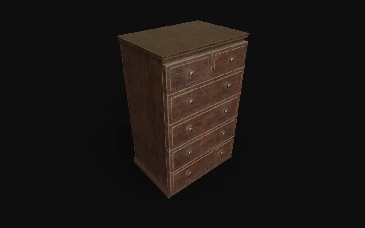 Antique wooden drawers. The table is made of solid wood colors. The model is low-poly. All details are combined into one mesh. Texture and model in zip archive.