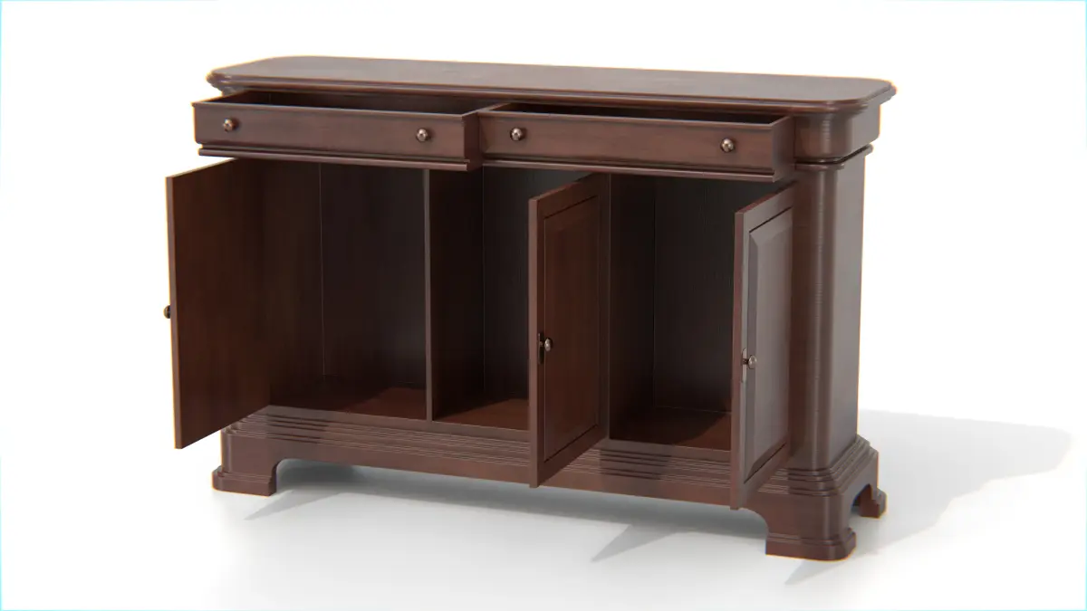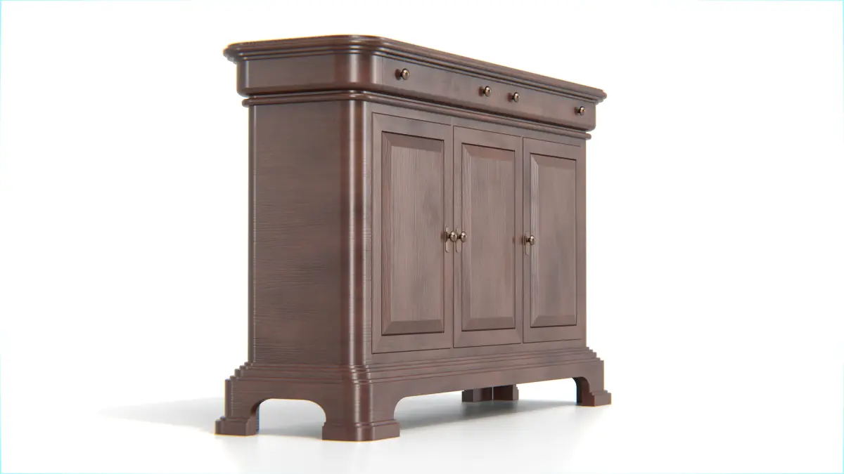 Perfect for vintage dining rooms, classic home interiors, or period visualization scenes that require timeless, elegant wooden furniture.