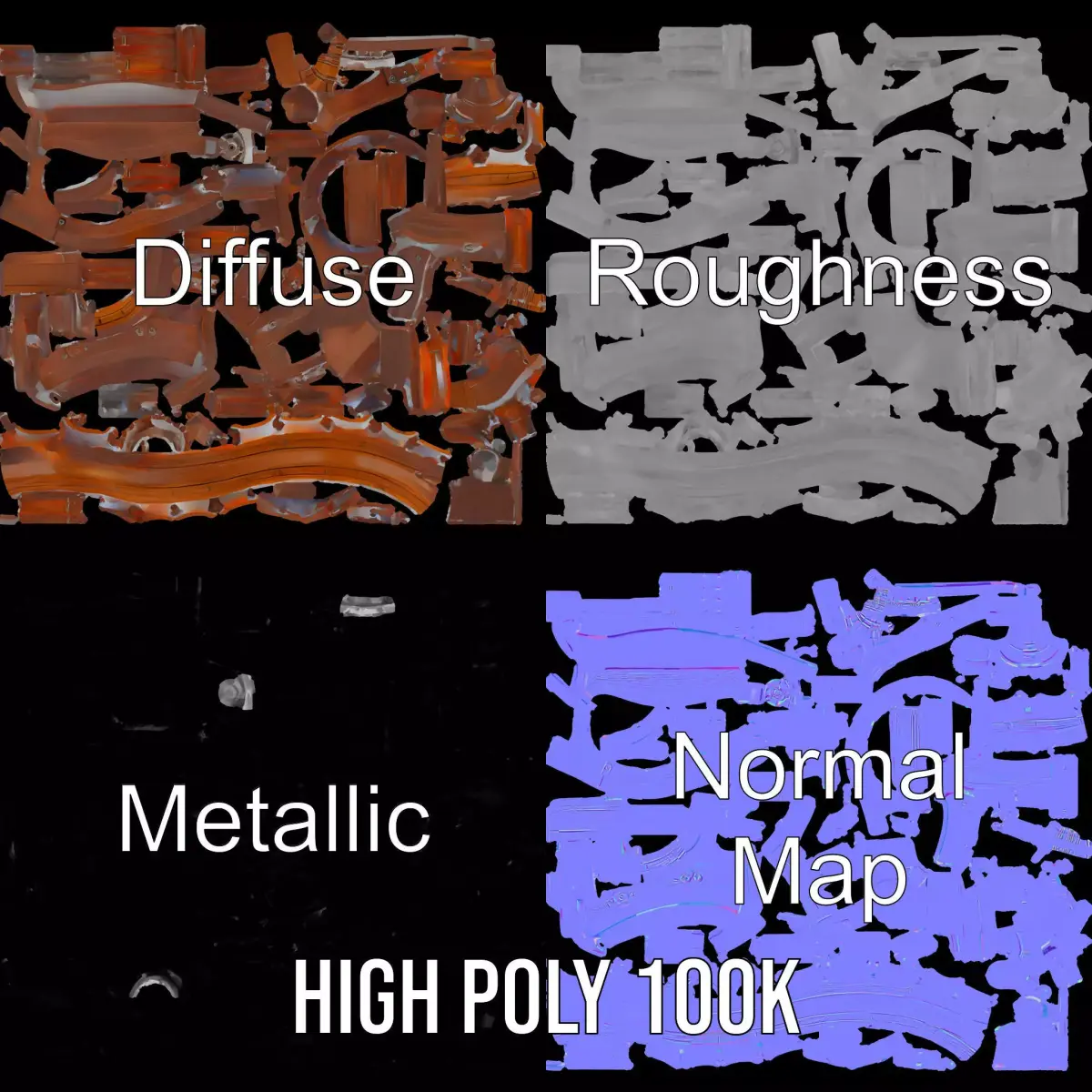 This Antique Wooden Spinning Wheel model pack captures the intricate details and classic charm of traditional spinning technology. Each model has 3 levels of detail: low-poly (1000 triangles for mobile), middle-poly (10,000 triangles for environment), and high-poly (100,000 triangles), which allows for the use of this model in production rendering (such as 3ds Max, Maya, Cinema 4D, Blender, Vray/Corona/Cycles and all others), game engines (Unity and Unreal compatible), and interactive presentations, providing a choice of detail based on the LOD System principle. Ideal for historical simulations, educational tools, or period piece scenes, this model is versatile and detailed. The model's textures are PBR, Diffuse, NormalMap, and reflection/roughness/metallic, which are suitable for any modern rendering engine. All models are accurately unwrapped and have no overlapping UV. All textures are 4096*4096 in size. Please like and leave a comment for the model if you liked it.