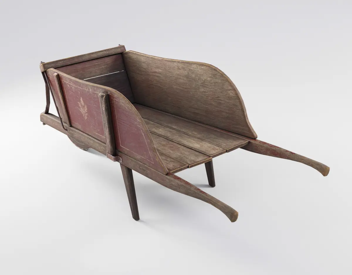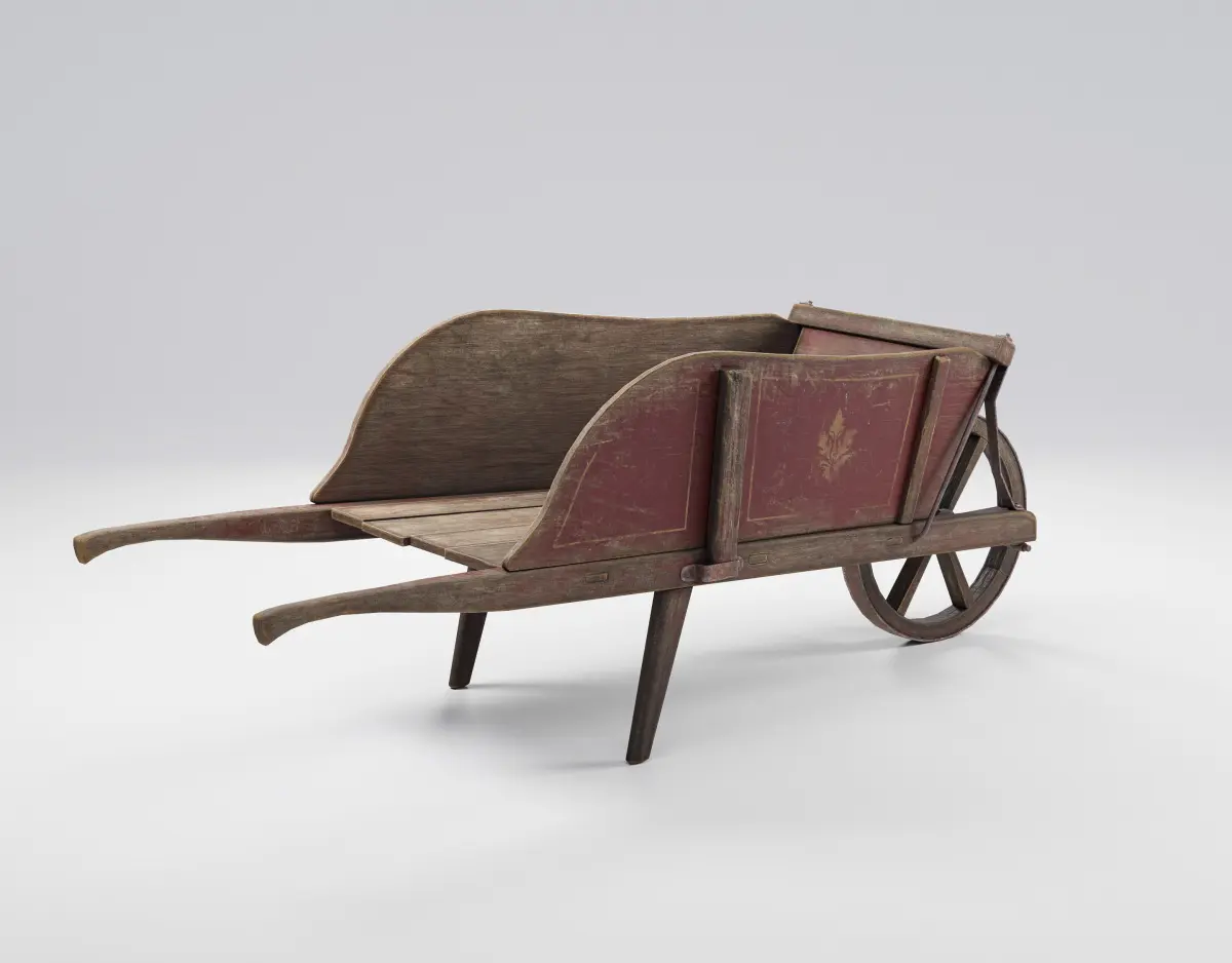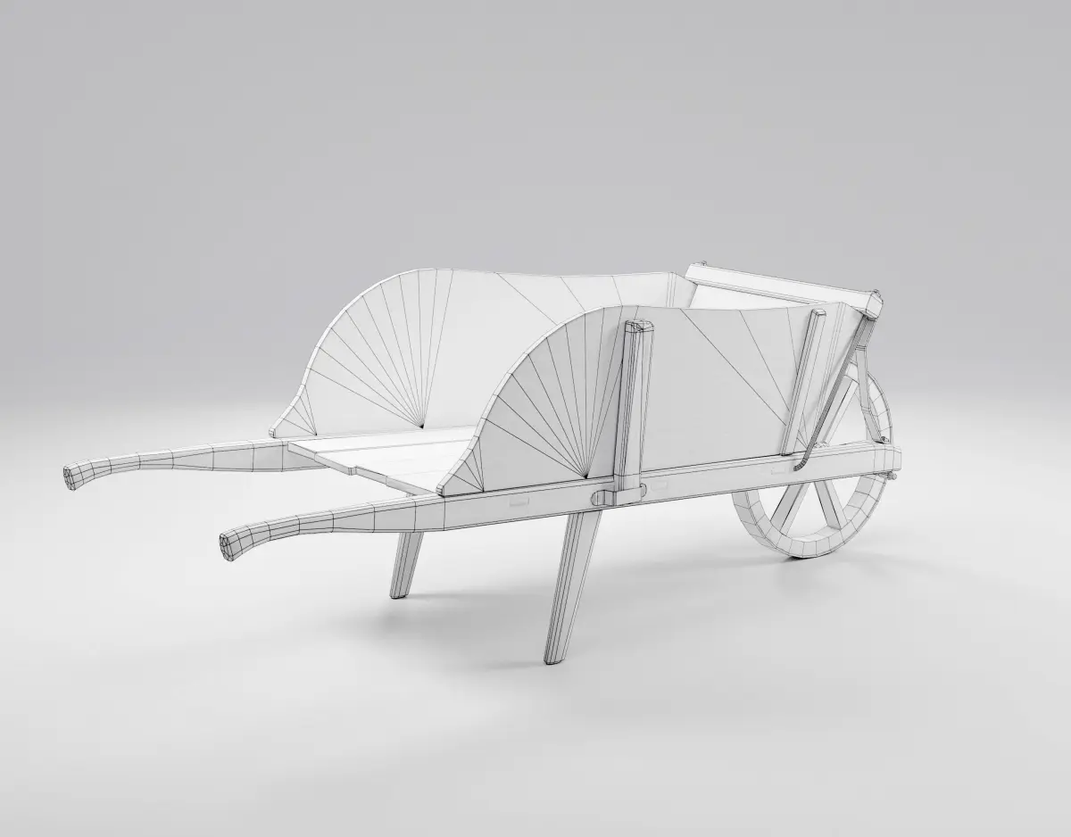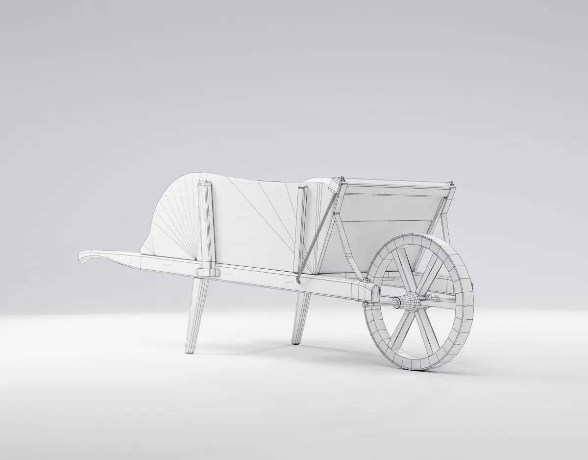 Low poly game-ready wooden wheelbarrow 3d model. UV Mapped.
