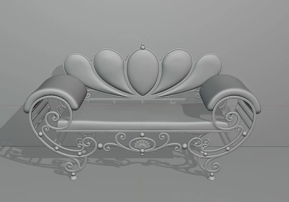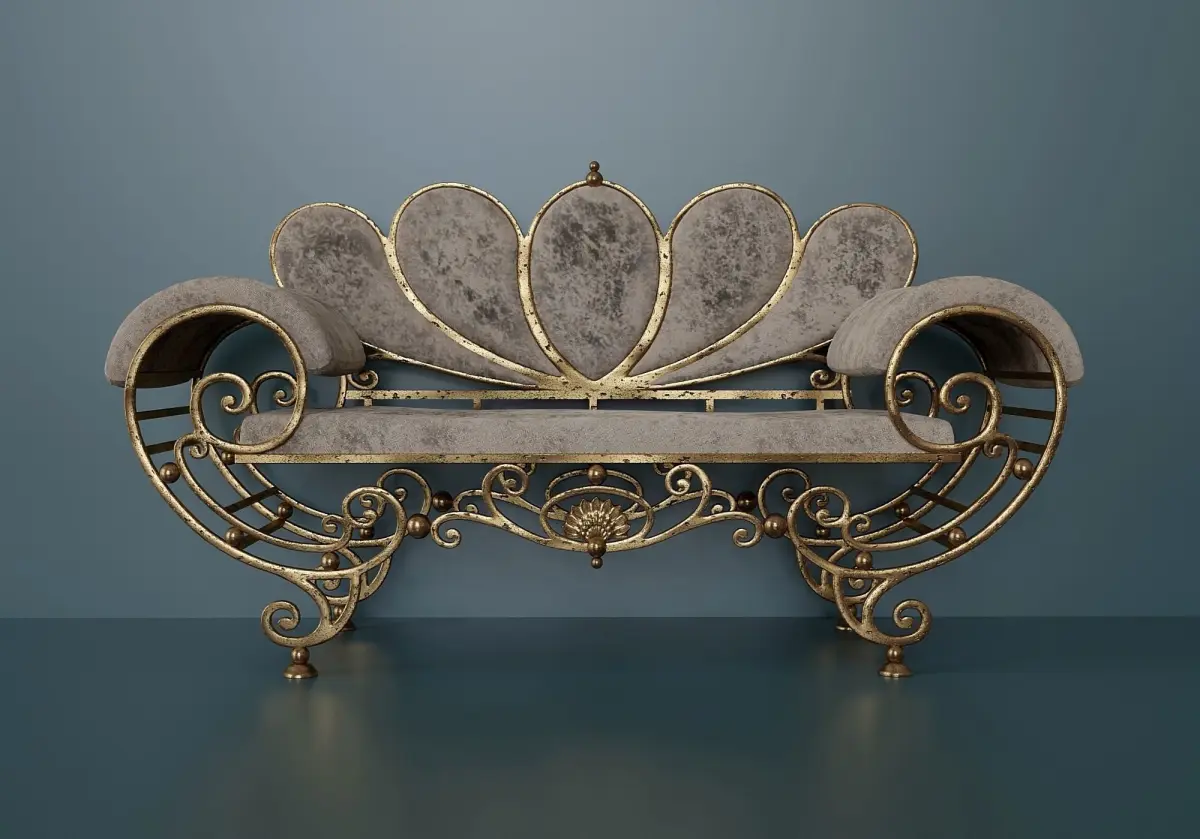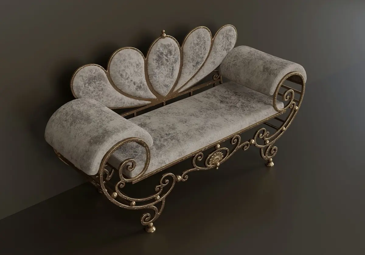 Antique wrought iron sofa with upholstered armrests and seat. The model consists of separate (Unrelated) objects. Metal body and soft upholstery. (each fabric element is a separate mesh) Textures (fabrics) were baked in substance painter. (Texture resolution 2048x2048) (Base color,Height,Metallic,Mixed AO,Roughness,Normal,Normal OpenGL.) All textures are packed in a zip archive.