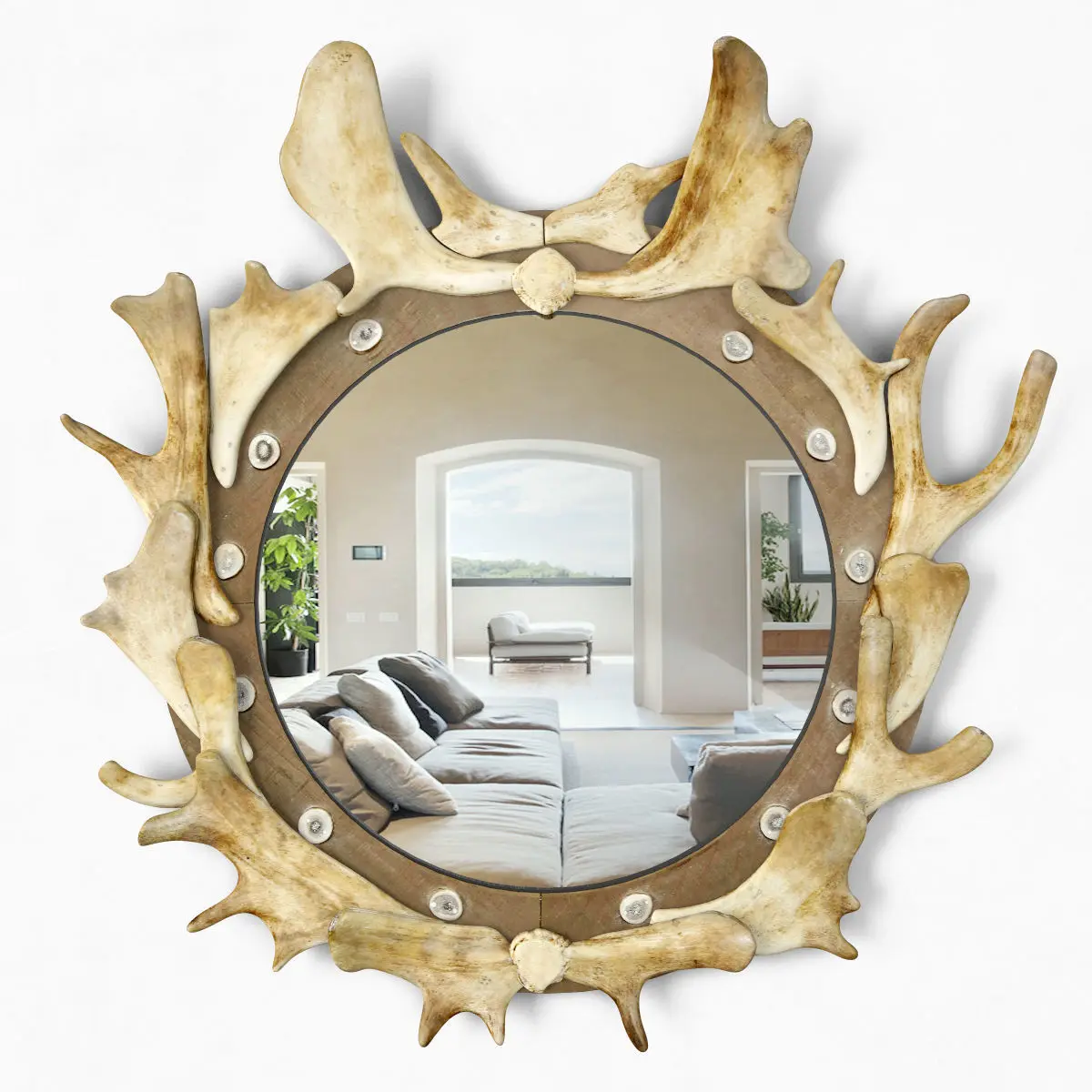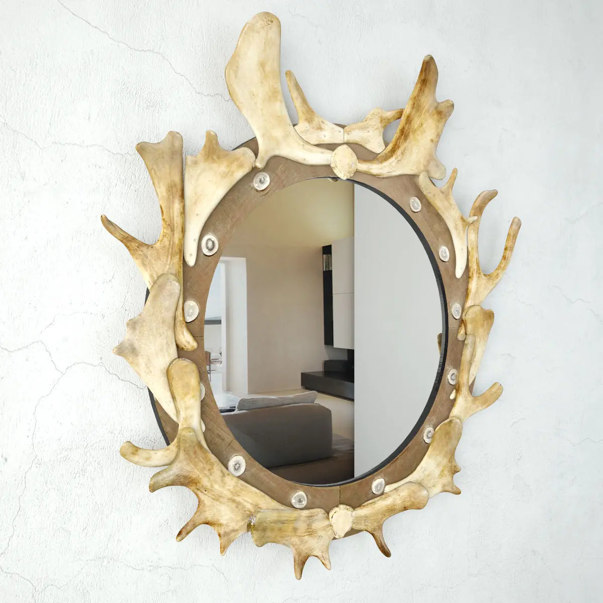 HomeCatalogAntler and Wood Mounted Convex Mirror 3D model