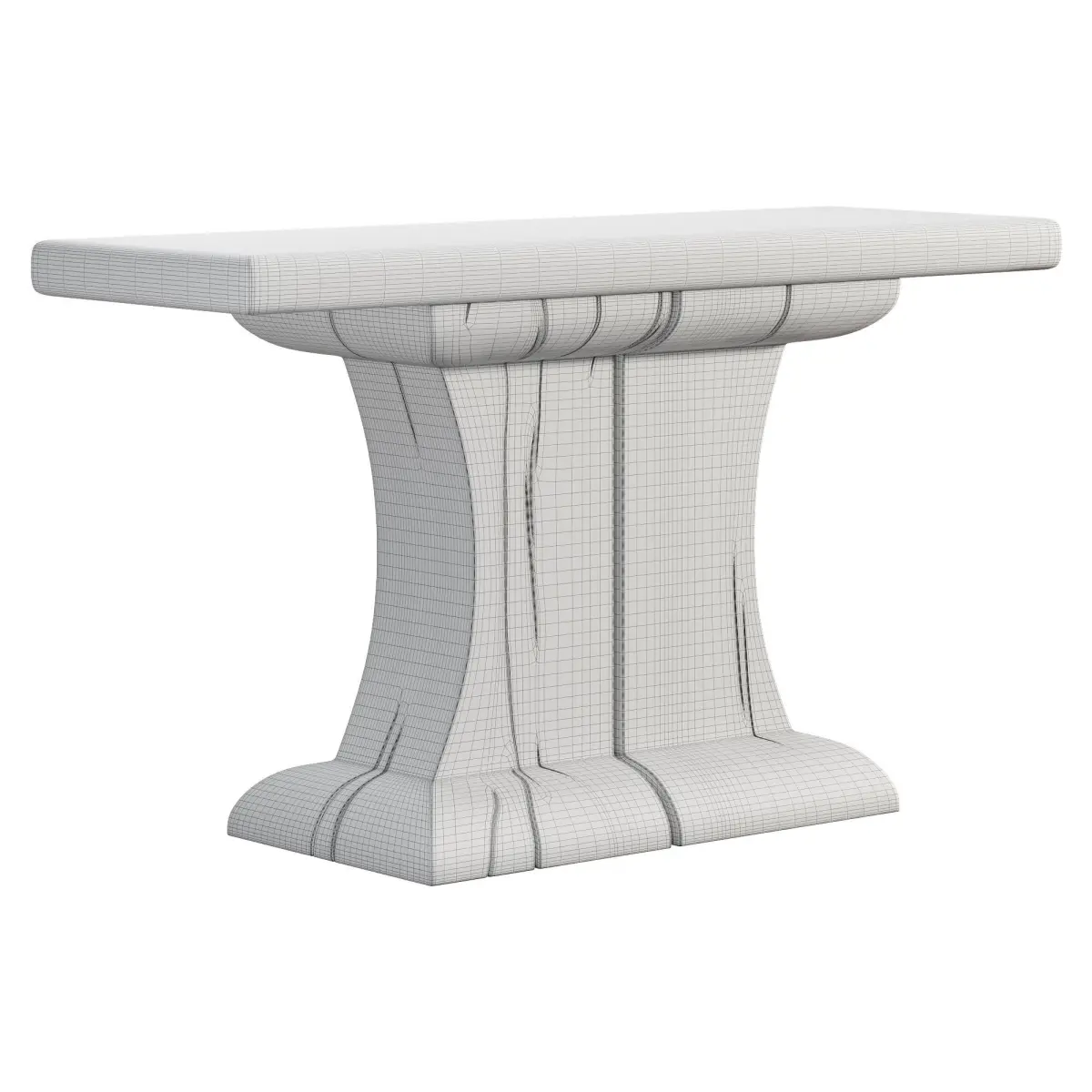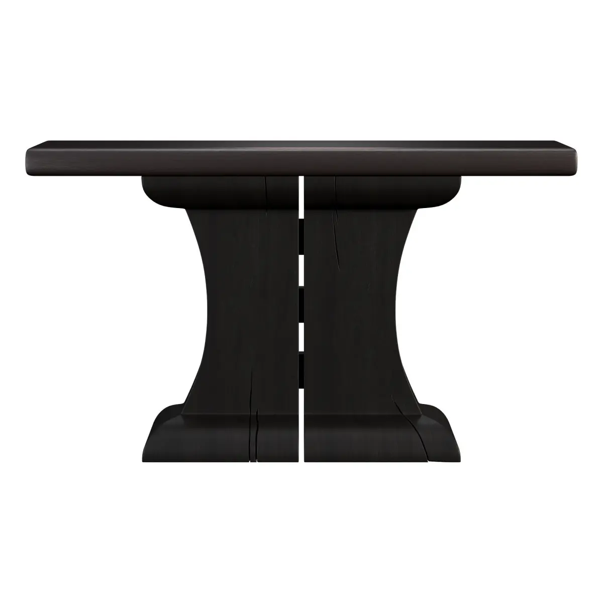 Organic forms provide the bold foundation for a robust console table softened by graceful curves and rounded edges. Boasting a Spanish Cedar top in a rich dark brown stained finish and deep dyed pine base, its two tones further differentiate the structural nature of this commanding piece. Hand carved by artisans, it imbues a distinctive presence, with cracks inherent to the woods enhancing their pedigree. Made in New Mexico, USADimensions:18 x 48 x 30 H inches Saved in Corona Legacy MTL for older versions of Corona Render