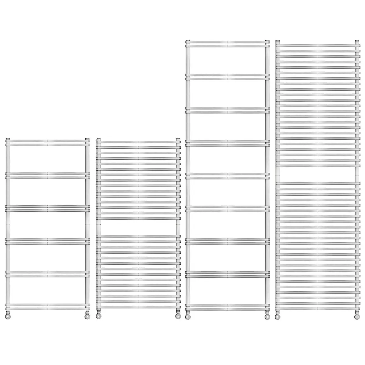 V8 and Pieno consist of two vertical tubes to which horizontal elements are attached; these elements are repeated, but in a different rhythm, changing their configuration: the Pieno has a stronger aesthetic impact than the V8, due to the greater number of horizontal elements of which it is composed.