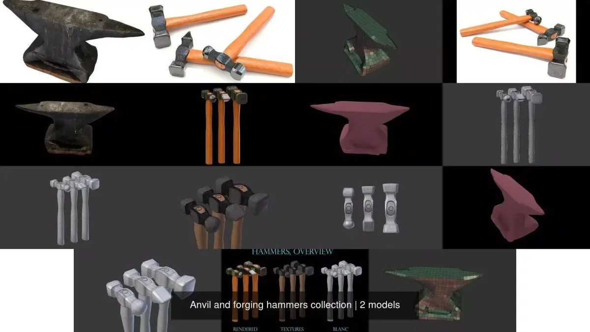 These models are the 3 most used types of hammers for your typical blacksmith.the basic forging hammer with the two similar sides is used to do most of the forging work.The other two hammers are for more specialized tasks like drawing out the metal, or to create more complex shapes