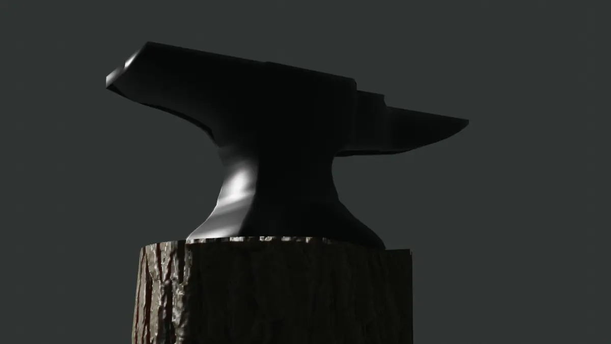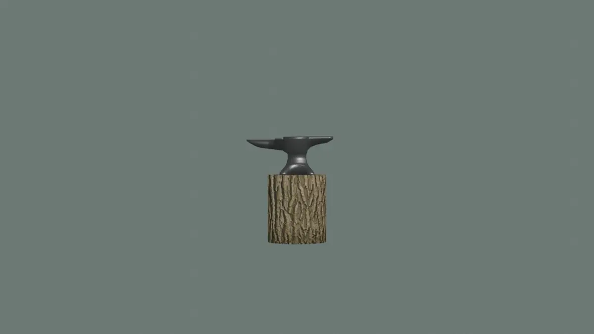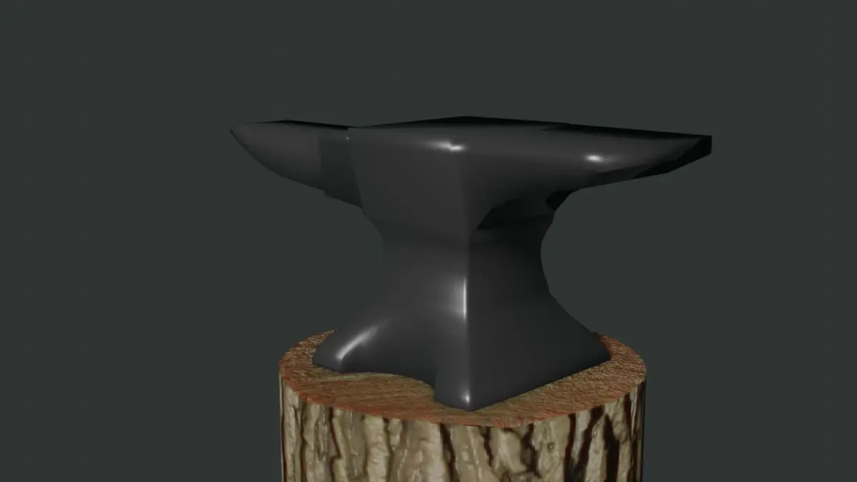 A shiny, metalic, gray anvil that is on a log. The log is textured and has a displacement map. This model didn't take me as long to make, so I've decided to give it away for free!