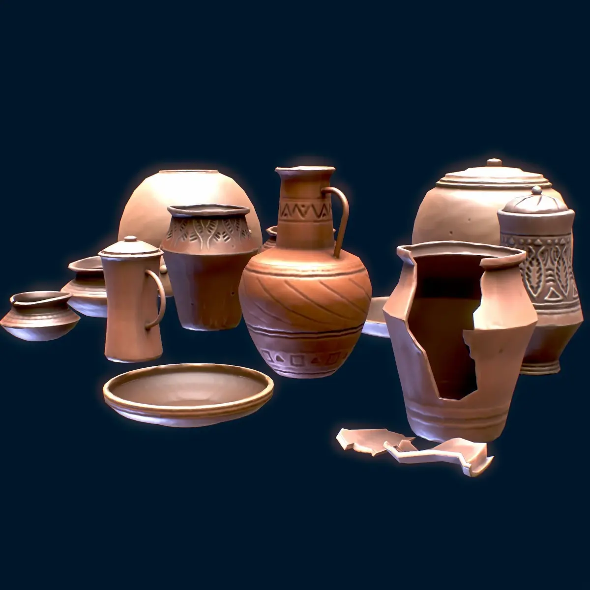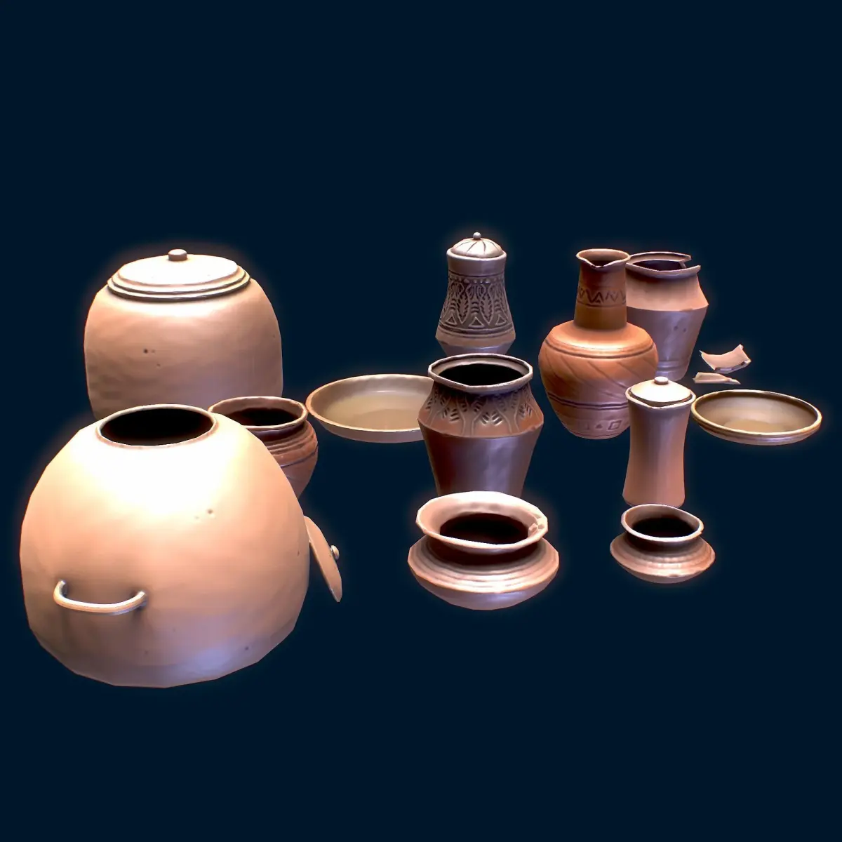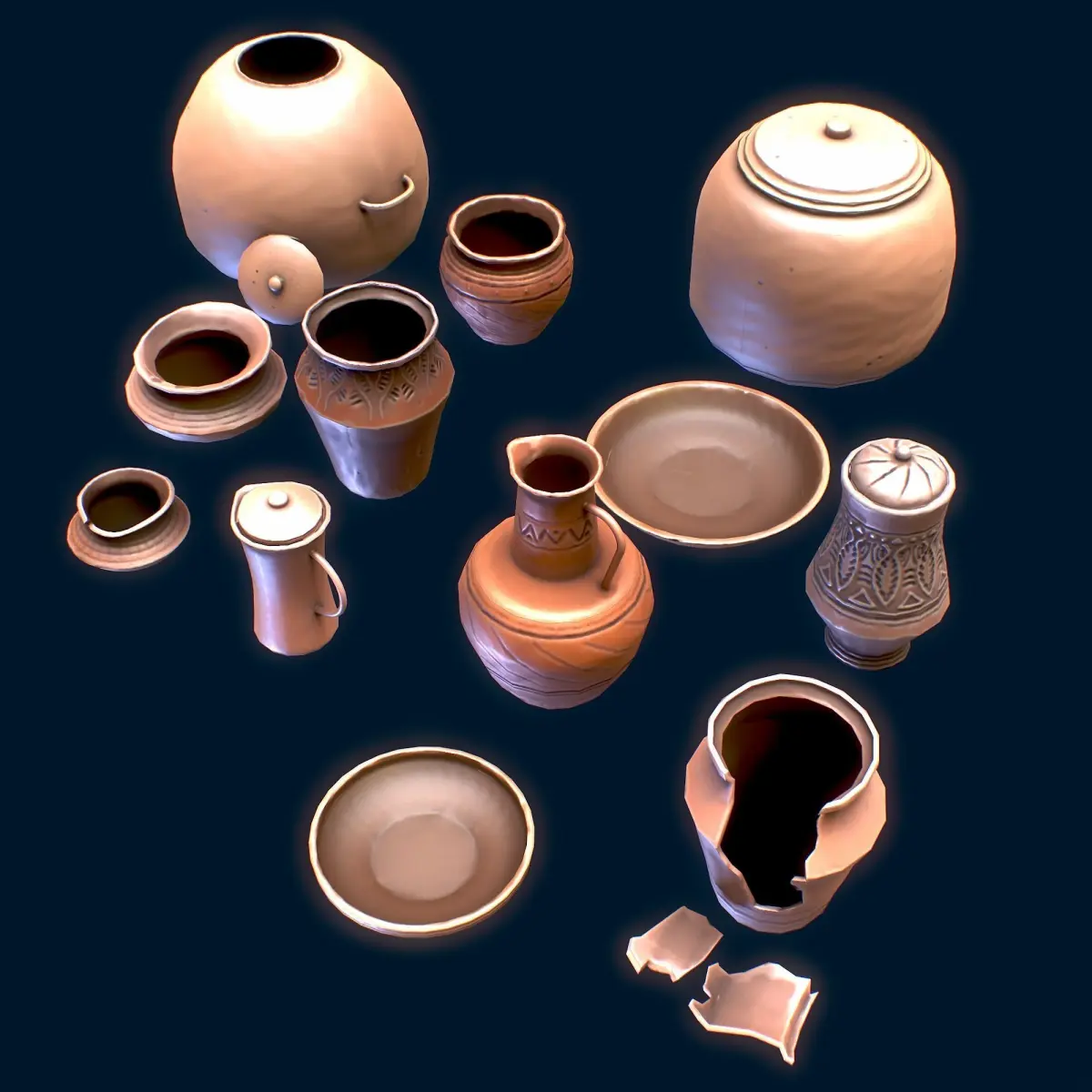 Tableware props old stylized-handpainted substancepainter blender handpainted cartoon game texture lowpoly gameart zbrush wood stylized download gameready 12 models
