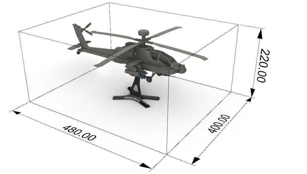 High quality model of the AH-64 Apache, full of details, ready to print.