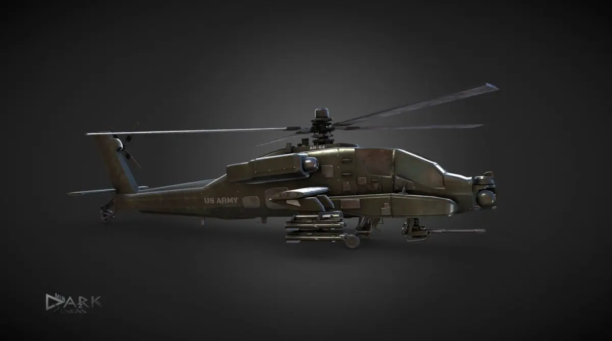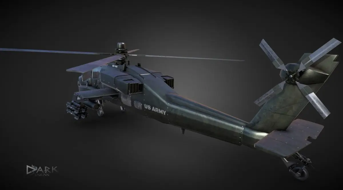 The Boeing AH-64 Apache is an American twin-turboshaft attack helicopter with a tailwheel-type landing gear arrangement and a tandem cockpit for a crew of two. It features a nose-mounted sensor suite for target acquisition and night vision systems. It is armed with a 30 mm (1.18 in) M230 chain gun carried between the main landing gear, under the aircraft’s forward fuselage, and four hardpoints mounted on stub-wing pylons for carrying armament and stores, typically a mixture of AGM-114 Hellfire missiles and Hydra 70 rocket pods. The AH-64 has significant systems redundancy to improve combat survivability.