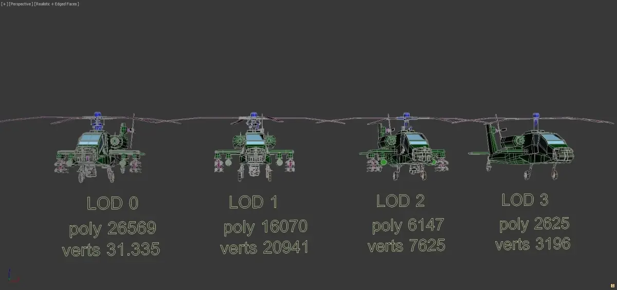 Apache Game HelicopterFormat -3ds max 2017-3ds max 2014-3ds -Obj-Fbx