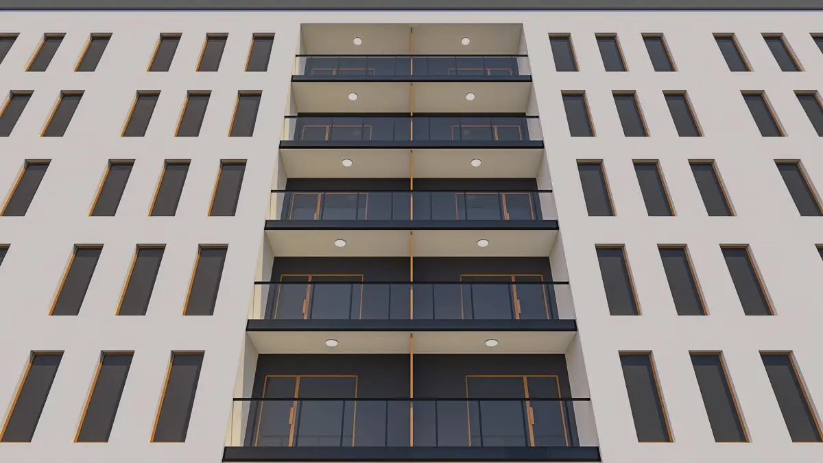 Highly detailed 3D model of an apartment building, modeled and rendered in Cinema 4D. The model was created using approximate real world dimensions.