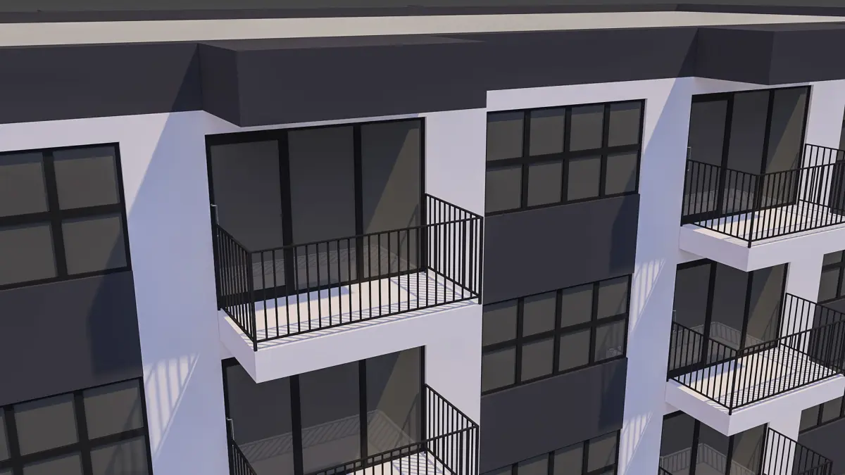 Highly detailed 3D model of an apartment building, modeled and rendered in Cinema 4D. The model was created using approximate real world dimensions.
