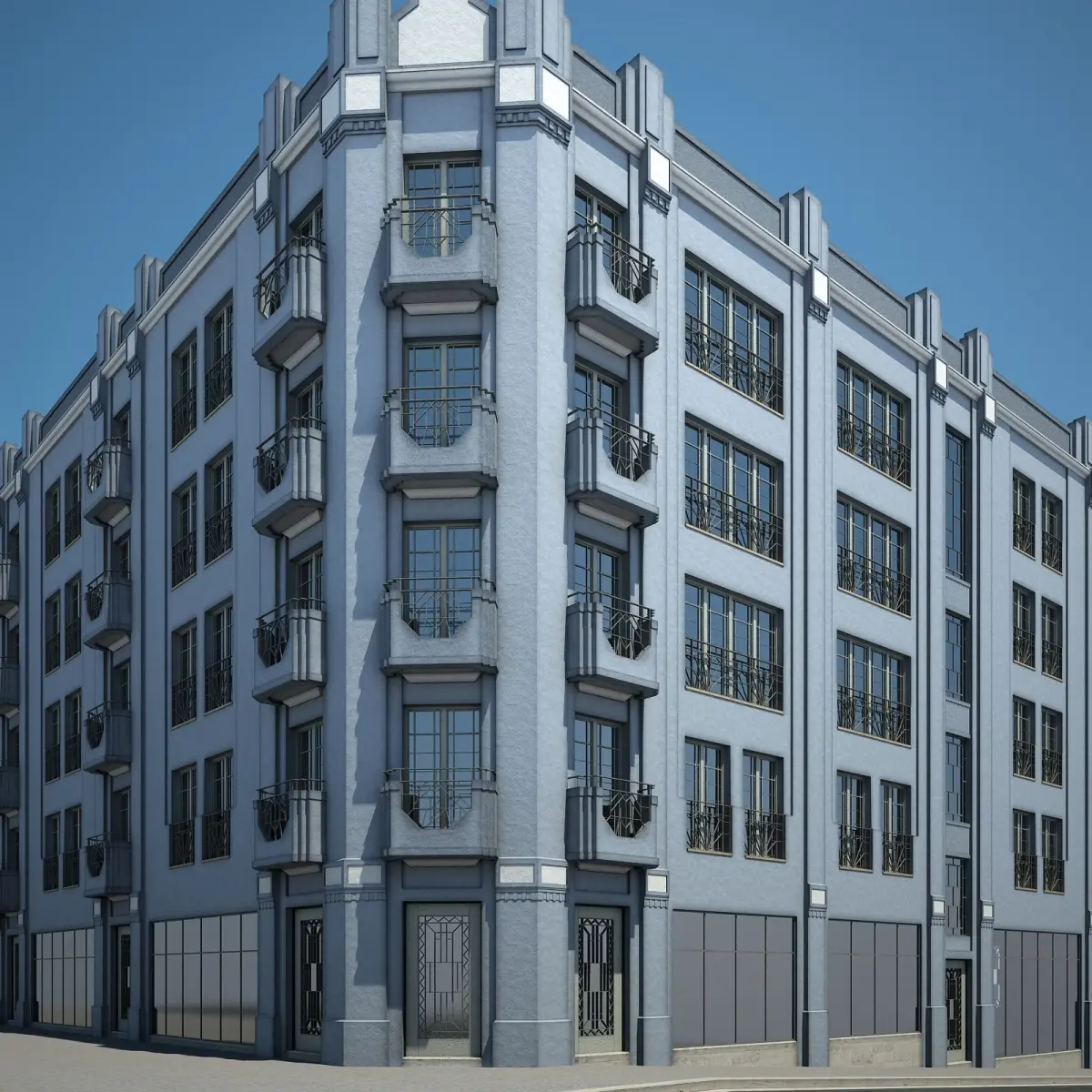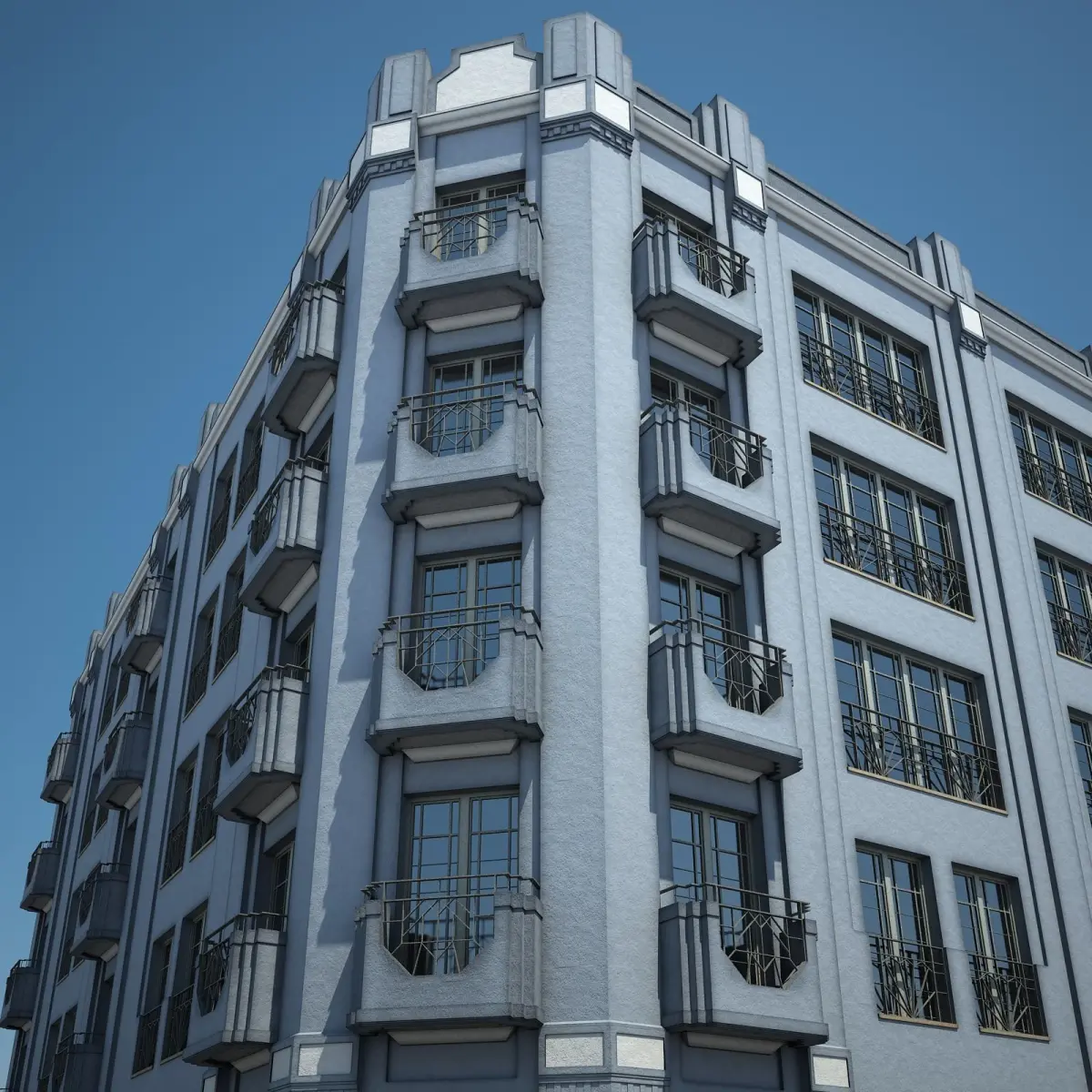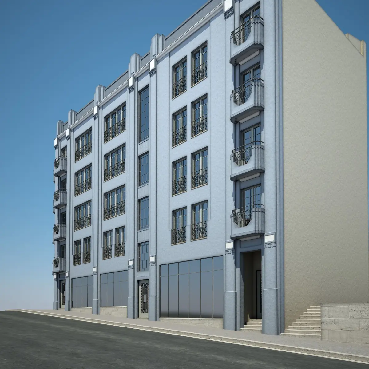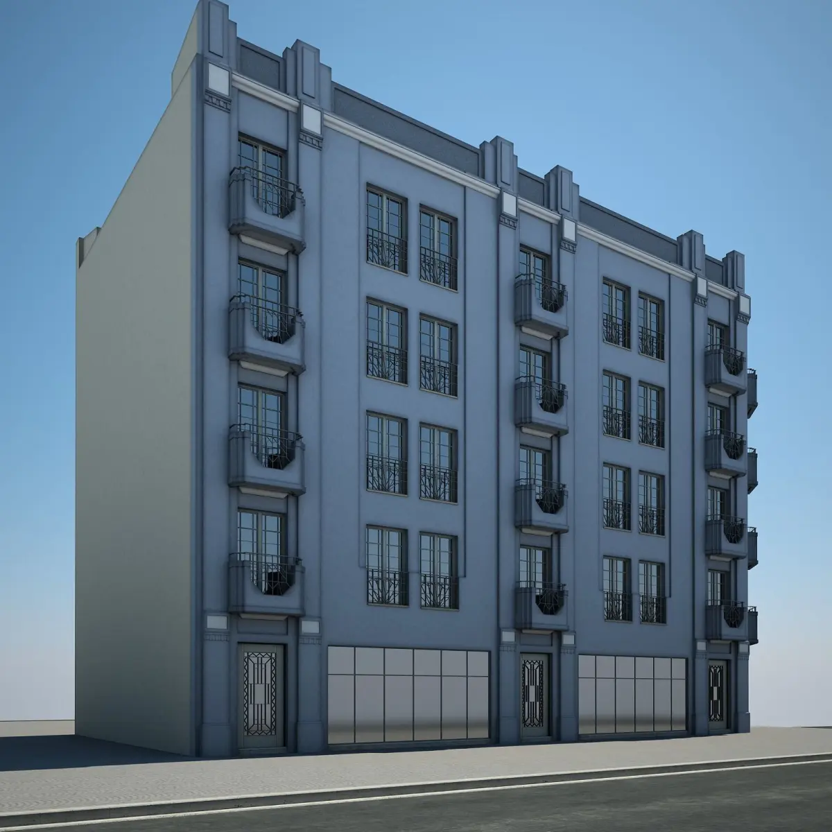Detailed 3D model of an urban apartment building. Suitable for high resolution close-up. Real world scale.