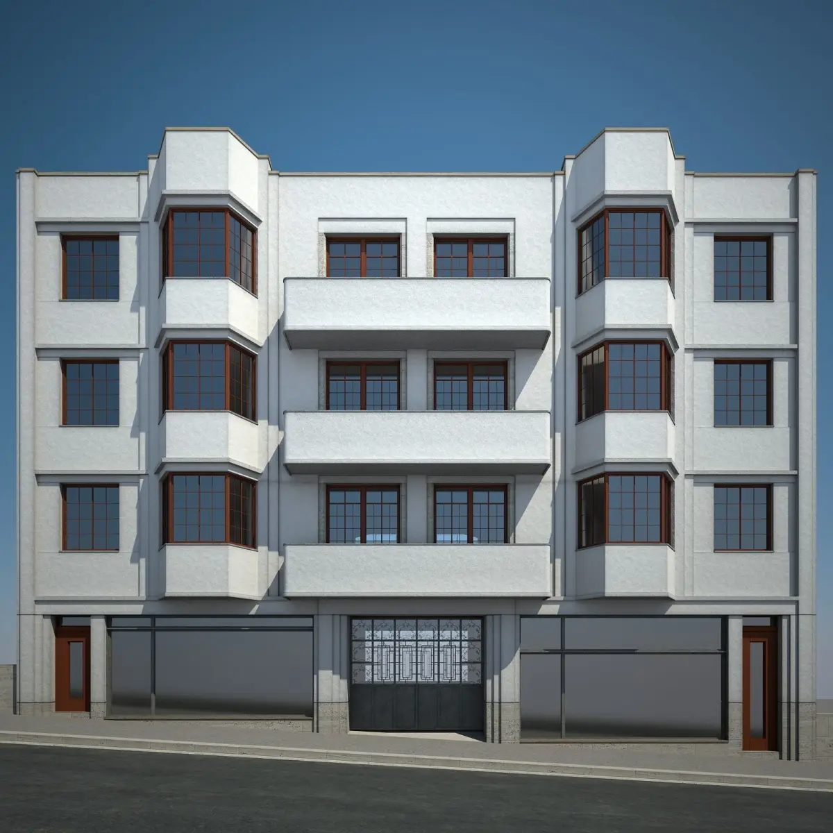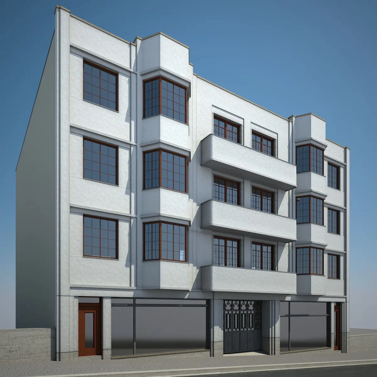 Detailed 3D model of an urban apartment building. Suitable for high resolution close-up. Real world scale.
