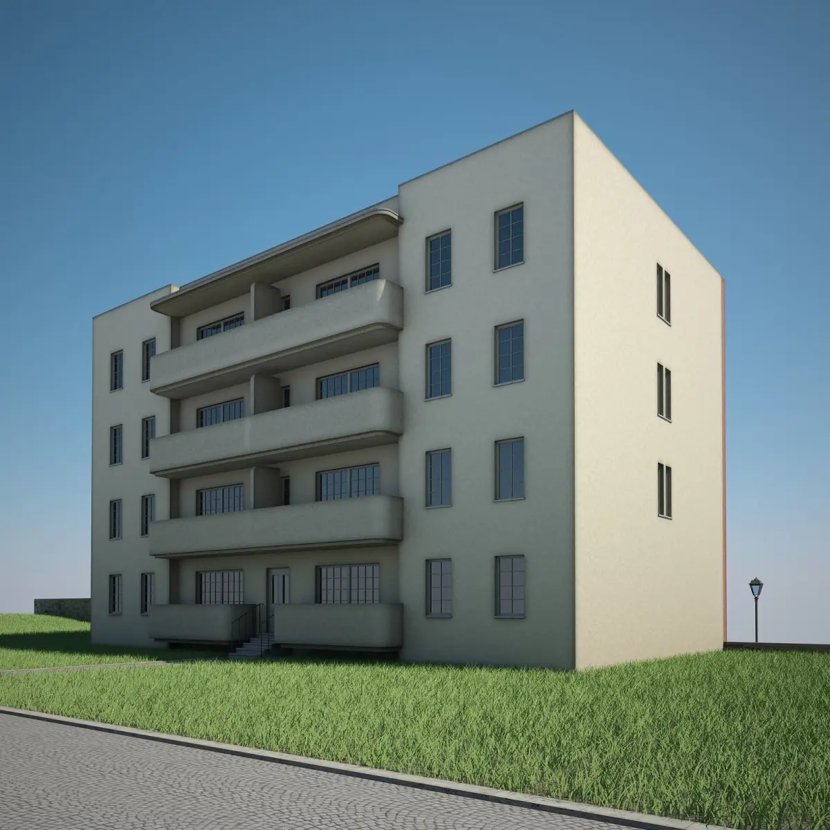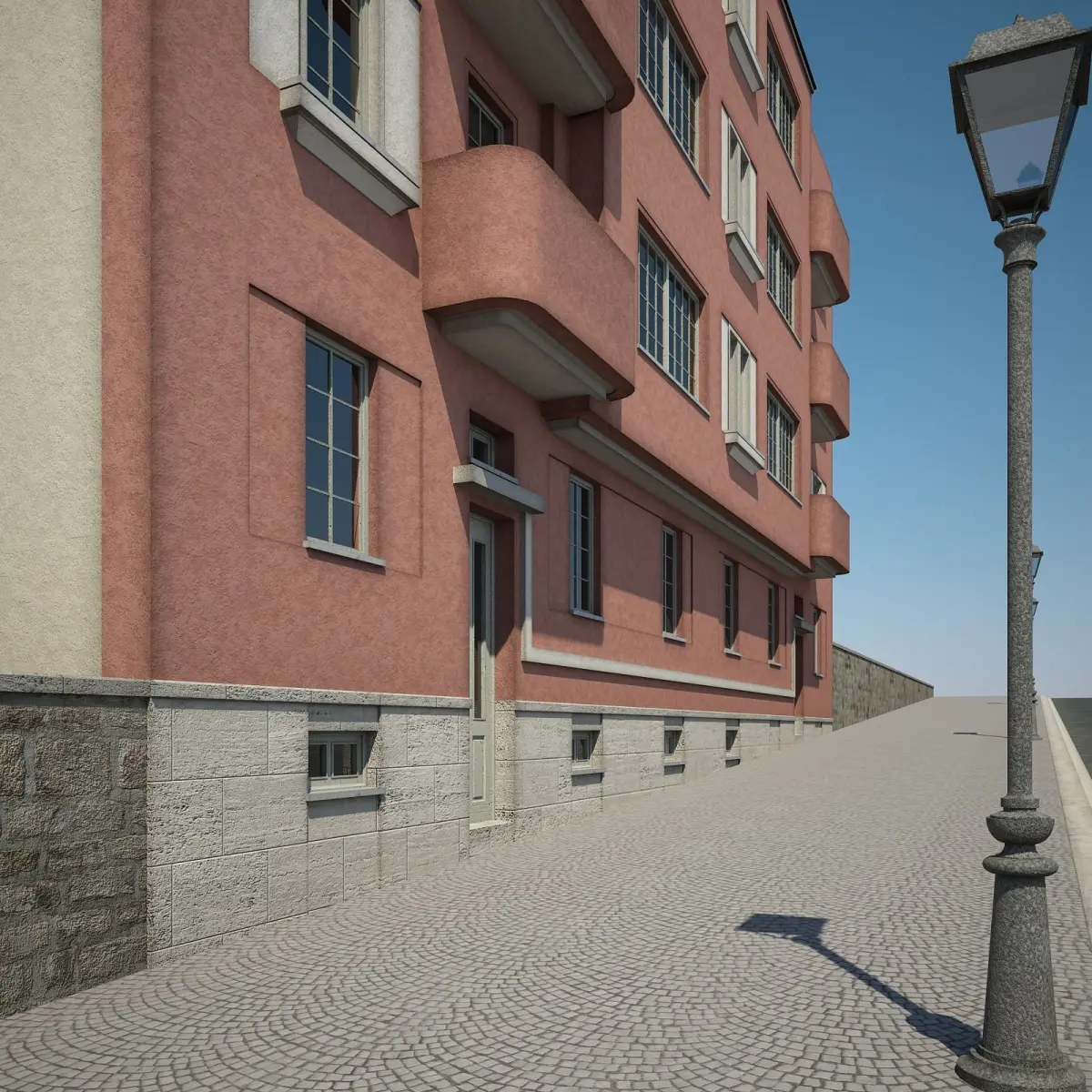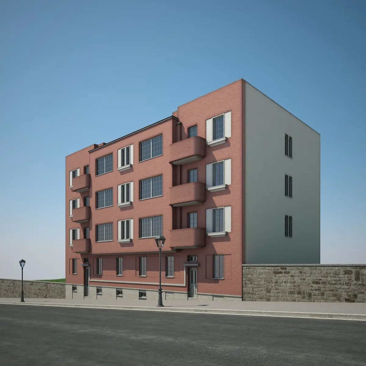 Detailed 3D model of an urban apartment building. Suitable for high resolution close-up. Real world scale.