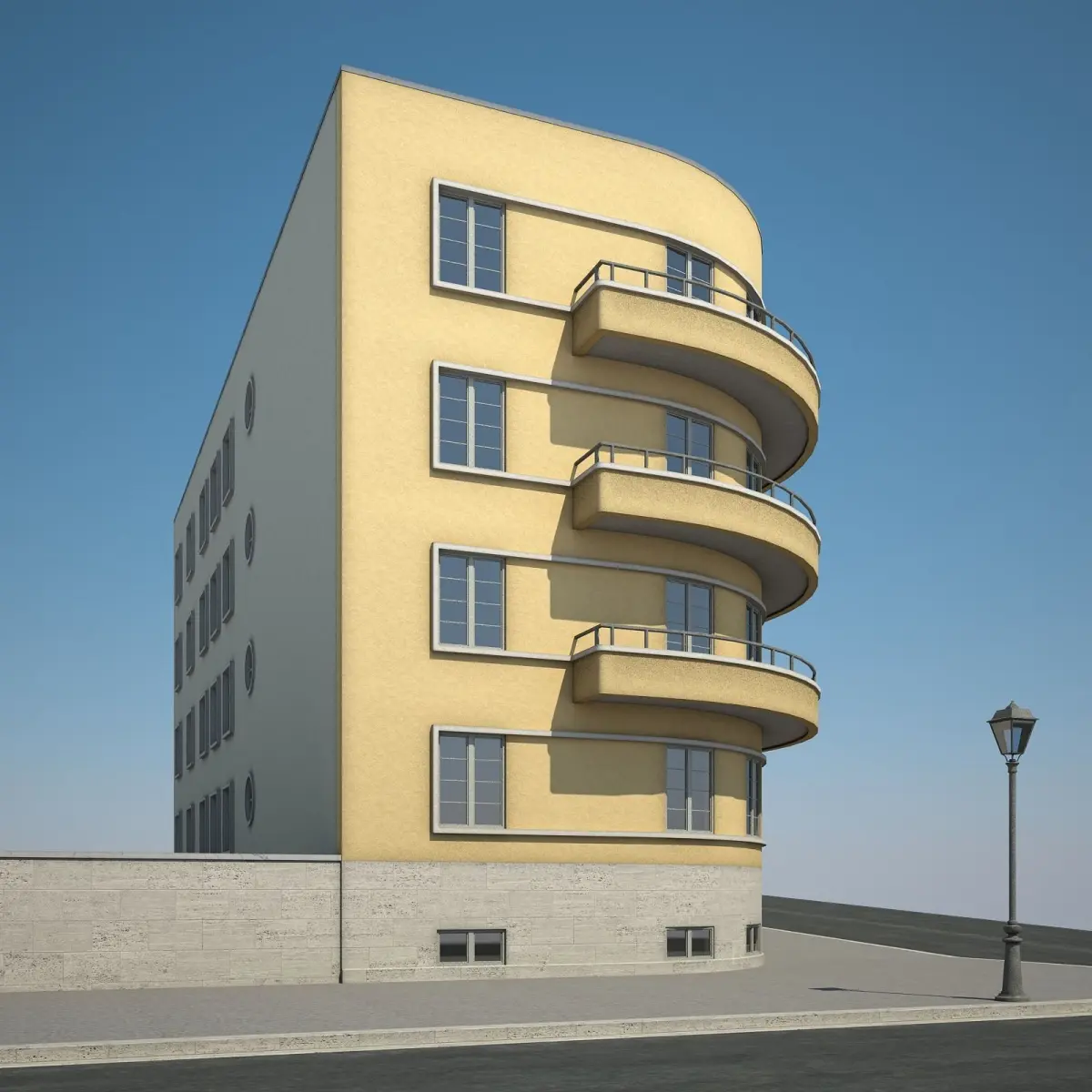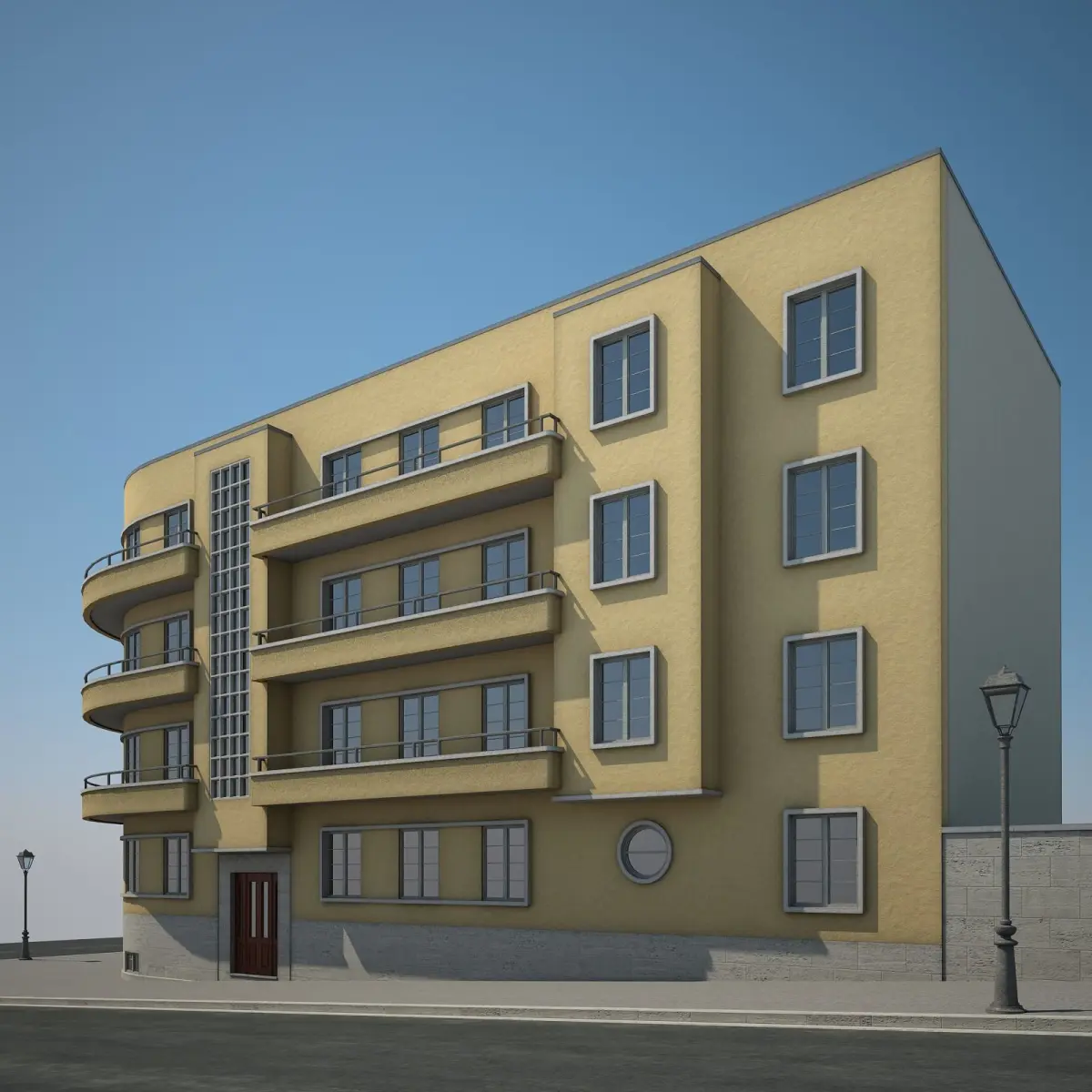 Detailed 3D model of an urban apartment building. Suitable for high resolution close-up. Real world scale.