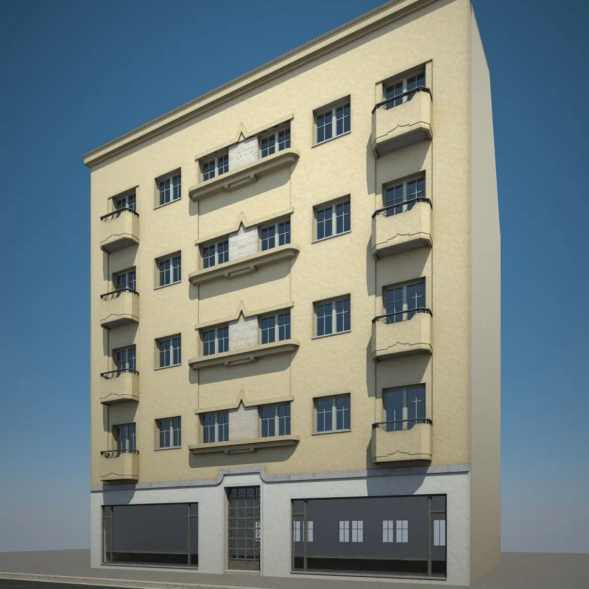 Detailed 3D model of an urban building. Suitable for high resolution close-up. Real world scale.