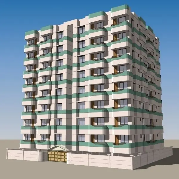 High detailed 9-Story Apartment Building model.Parts are separated and named individually.