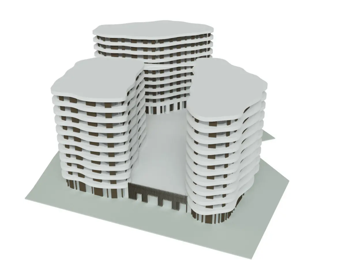 Apartment Building concept Low-poly The concept was developed for a developer from the city of Kharkiv, UkraineIt is a multi-story building consisting of three towers and a common stylobate partCan be used to fill city scenesPolygons 98282Vertices 53206 Original Autodesk 3dsmax 2020