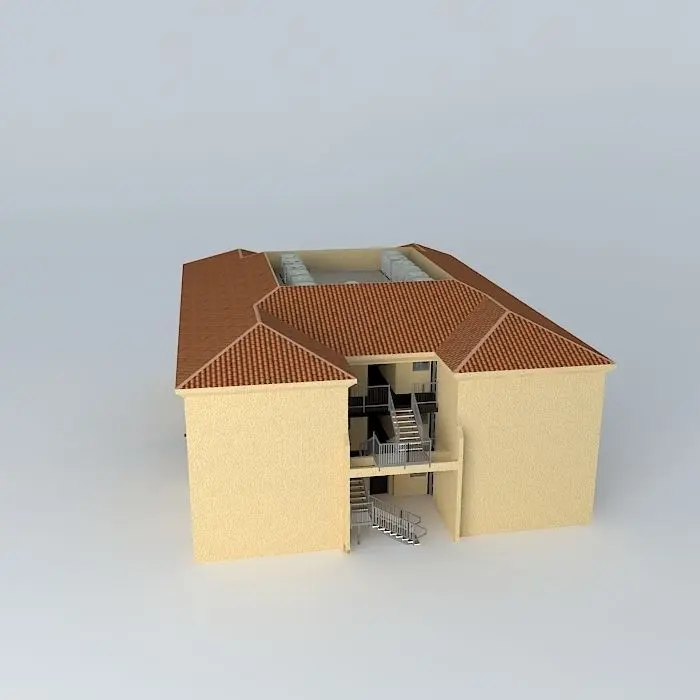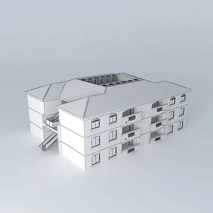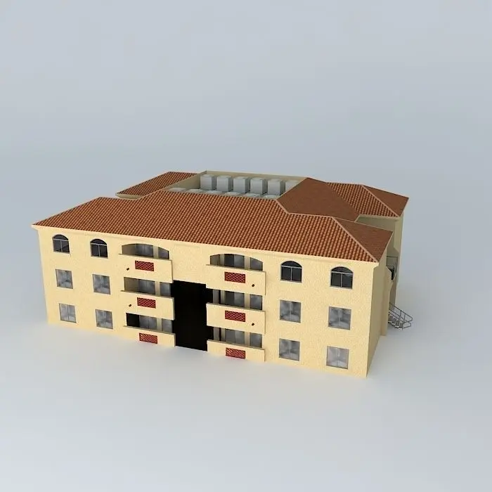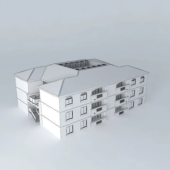 This 3D model was originally created with Sketchup 8 and then converted to all other 3D formats. Native format is .skp 3dsmax scene is 3ds Max 2016 version, rendered with Vray 3.00 12 units make up this apartment block among a multi-building complex. The complex contains 1, 2, and 3 bedroom apartments. This specific block contains 2 bedroom units. But wait! There's more! The kitchen is u-shaped, open living/dining, 2 bathrooms, laundry room, walk in closets, storage/ mechanical (includes water heater). It also includes breaker boxes, private ducts, fire extinguisher cases in the breezeways, and cool stairways on both ends of the building. The rooftop houses 12 air conditioners and an acess door. The ground floor has 2 storage units in which can be rented for those tenents who have more stuff yet, it is more expensive. Each apartment was constructed. Look into the windows. If you wish to furnish, each floor is on a seperate layer for easy access. Even though each unit is exactly the same, it looks kind of cool to see with the roof off. It also looks cool to see into each window at once! Enjoy and please rate :)