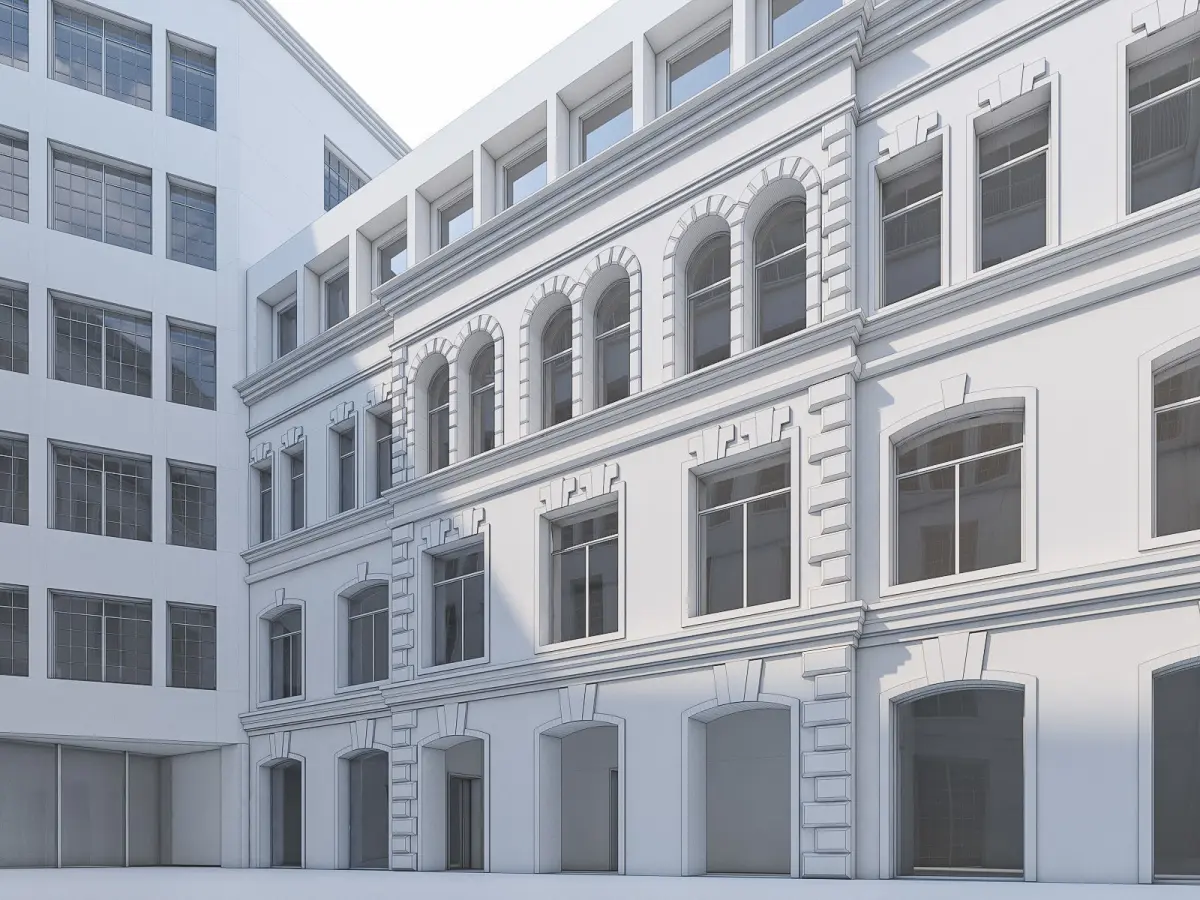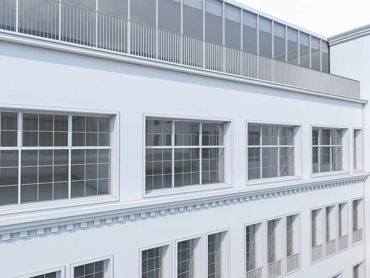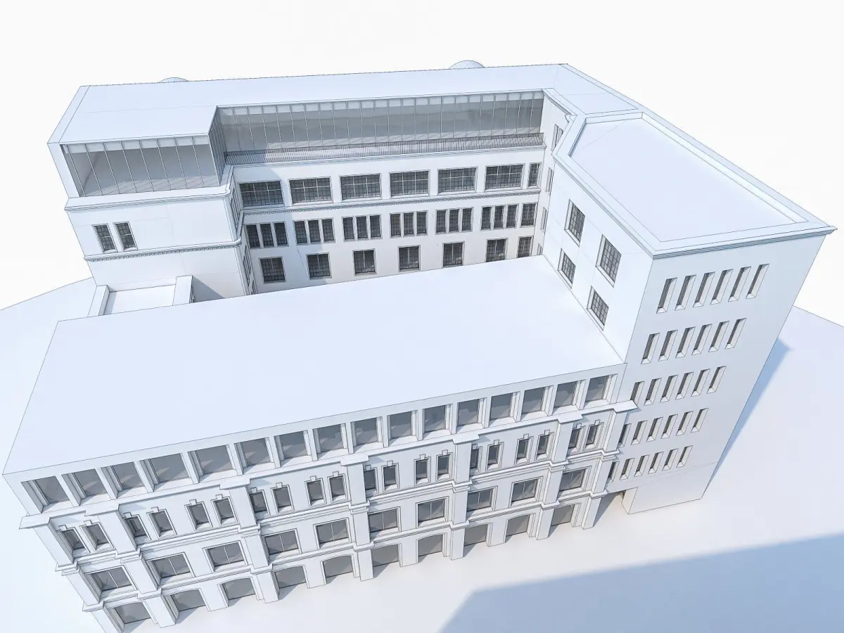 - Scene objects are organized by layers:BLD_wallsBLD_detailsBLD_glassBLD_framesBLD_railings